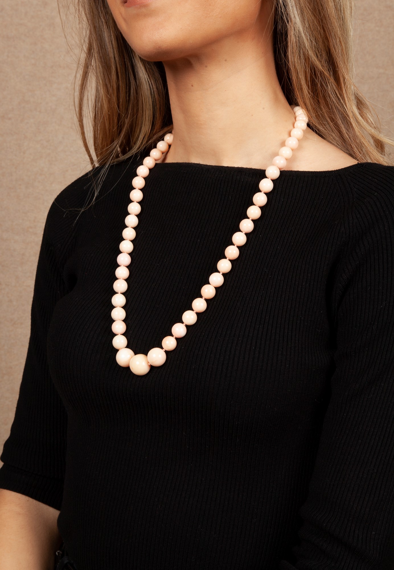 Collana di corallo rosa a sfere e oro Lunghezza cm 70