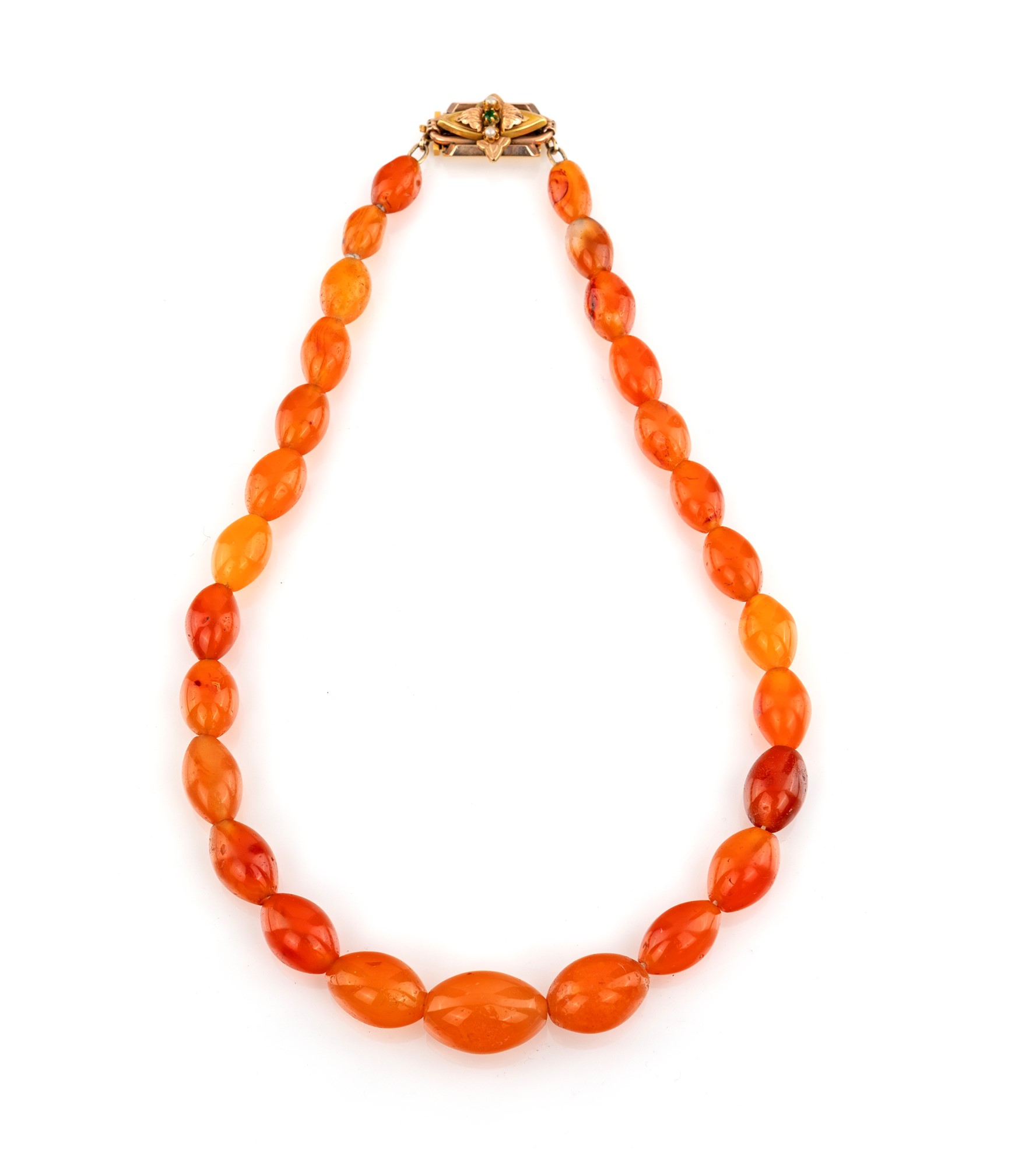 Lot 138 | Collana in corniola con chiusura in oro antico Lunghezza cm 47