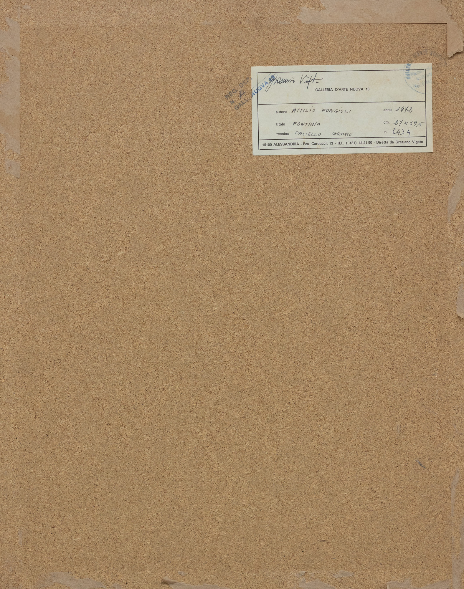 Etichetta al retro Galleria d'Arte Nuova 13, Alessandria