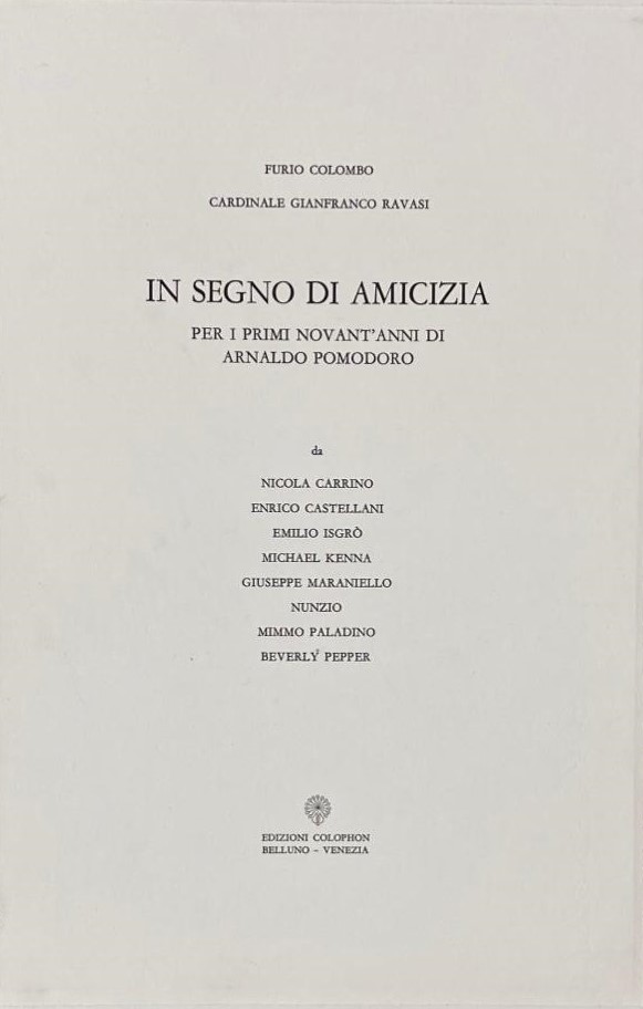 In segno di amicizia: Per i primi novant’anni di Arnaldo Pomodoro da Nicola Carrino, Enrico Castellani, Emilio Isgrò, Michael Kenna, Giuseppe Maraniello, Nunzio, Mimmo Paladino, Beverly Pepper