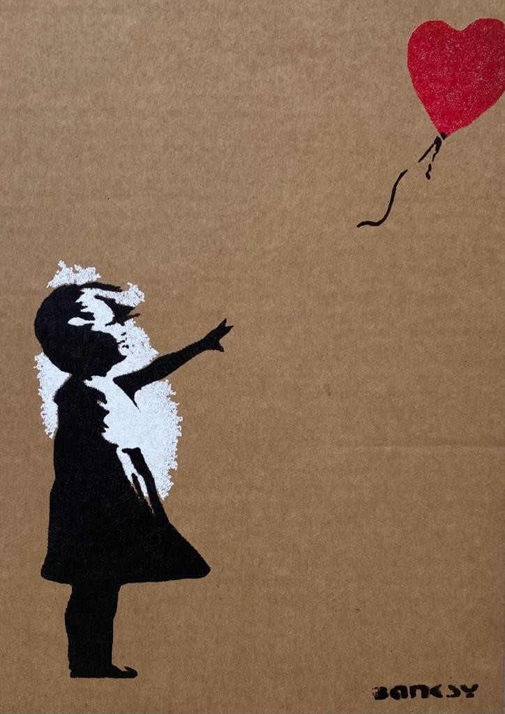 Firma a stencil in basso a destra, scritta e tiratura al verso: ‘Enjoy your free art!!!’ Numerato 43/50, timbro Dismaland Bemusement Park.