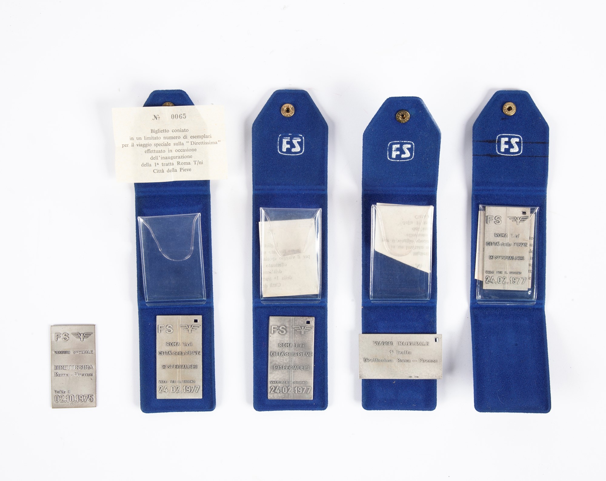 Lotto di cinque lingotti in argento 800/000 emessi in occasione della Direttissima Roma/Firenze