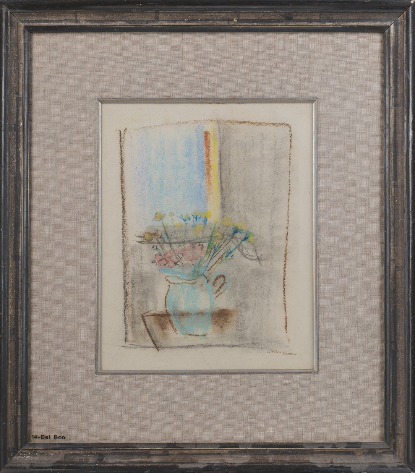 DEL BON ANGELO (1898 - 1952) Vaso di fiori. Tecnica mista su carta. Cm 24,50 x 30,00. Firma in basso a destra. Al retro cartiglio Galleria Varese, Varese. Provenienza: Collezione Besner - Decca. Lievi difetti. Cornice presente