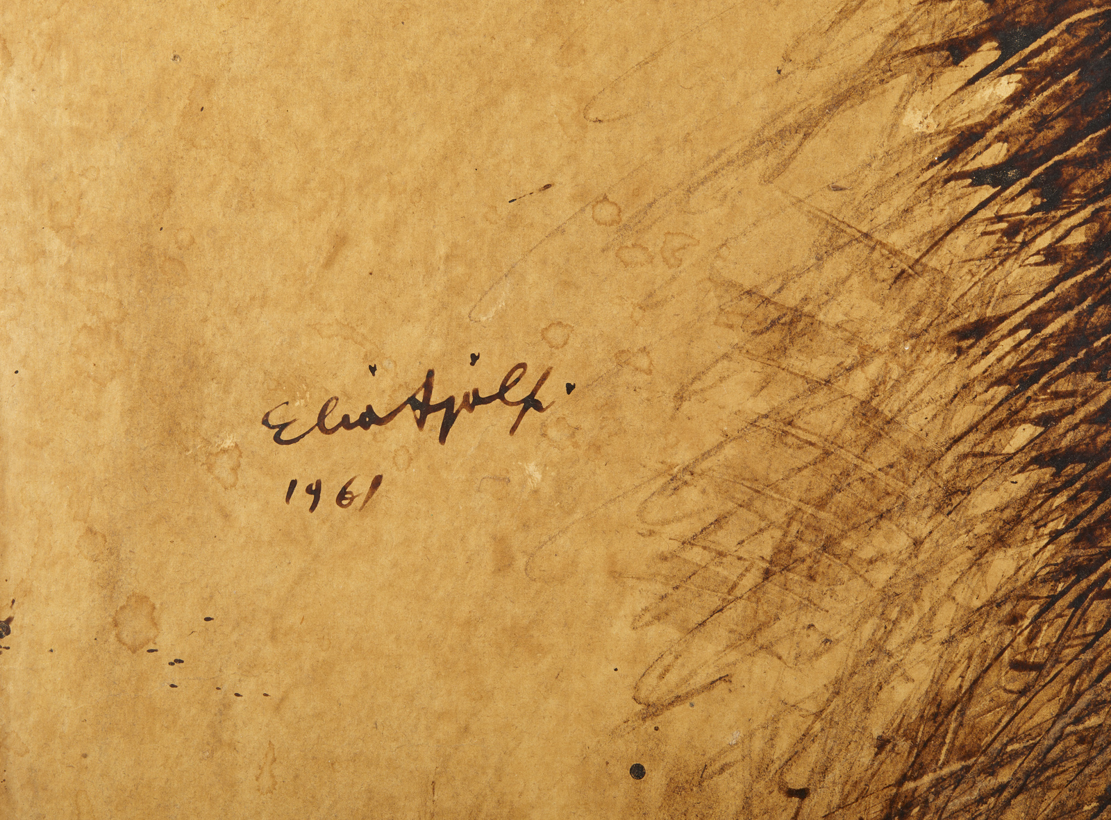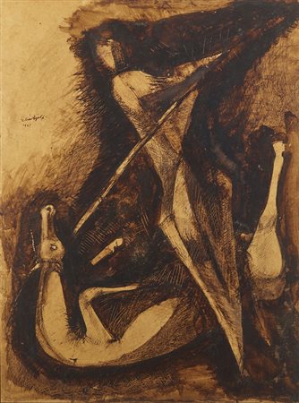 AJOLFI ELIA (1916 - 2001) Senza titolo. 1961. Tecnica mista su carta applicata su tavola. Cm 75,00 x 100,00. Firma e anno in alto a sinistra. Lievi difetti. Cornice presente