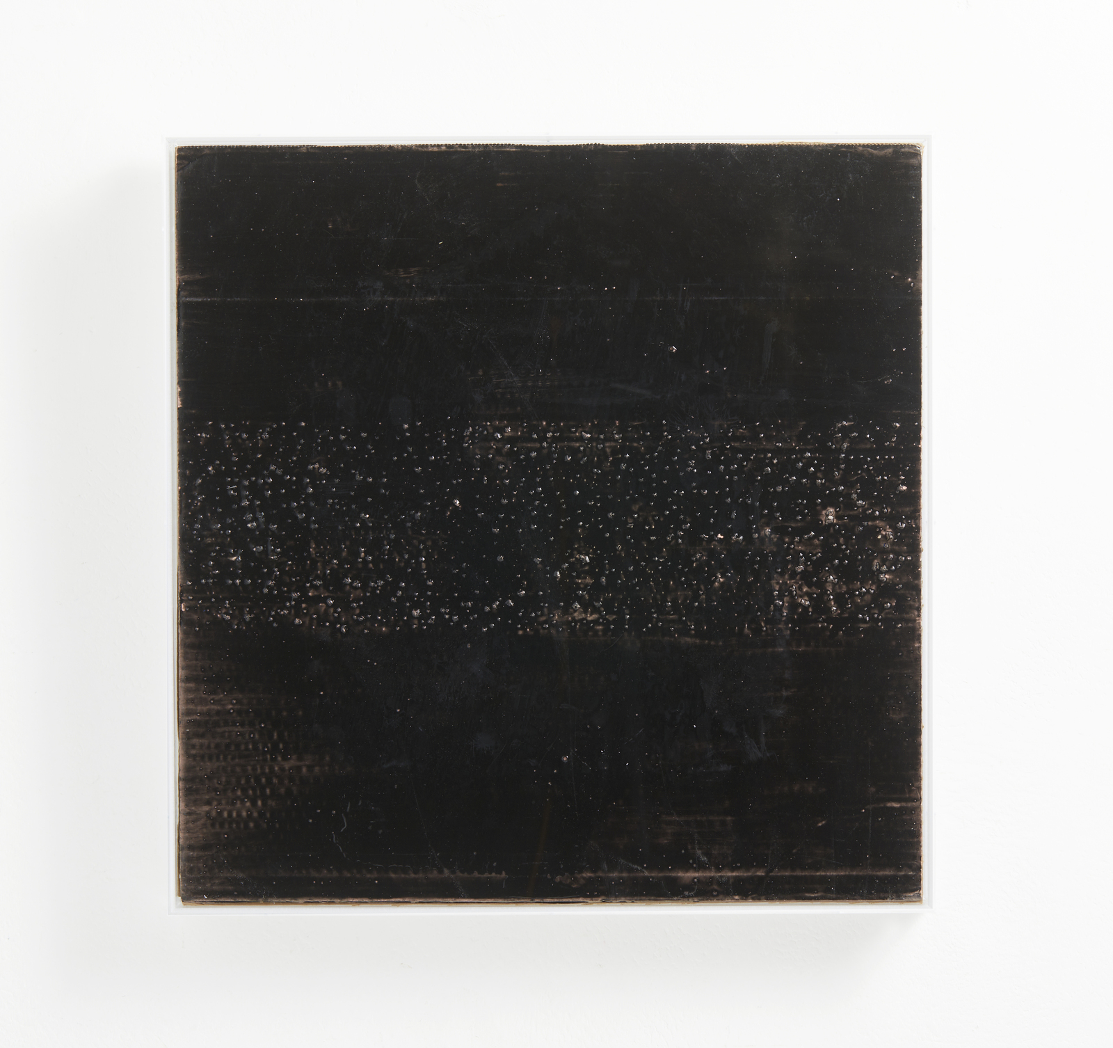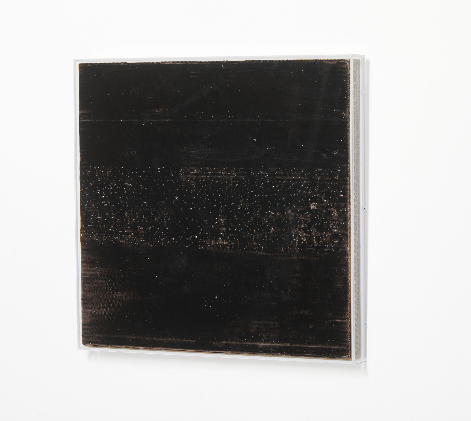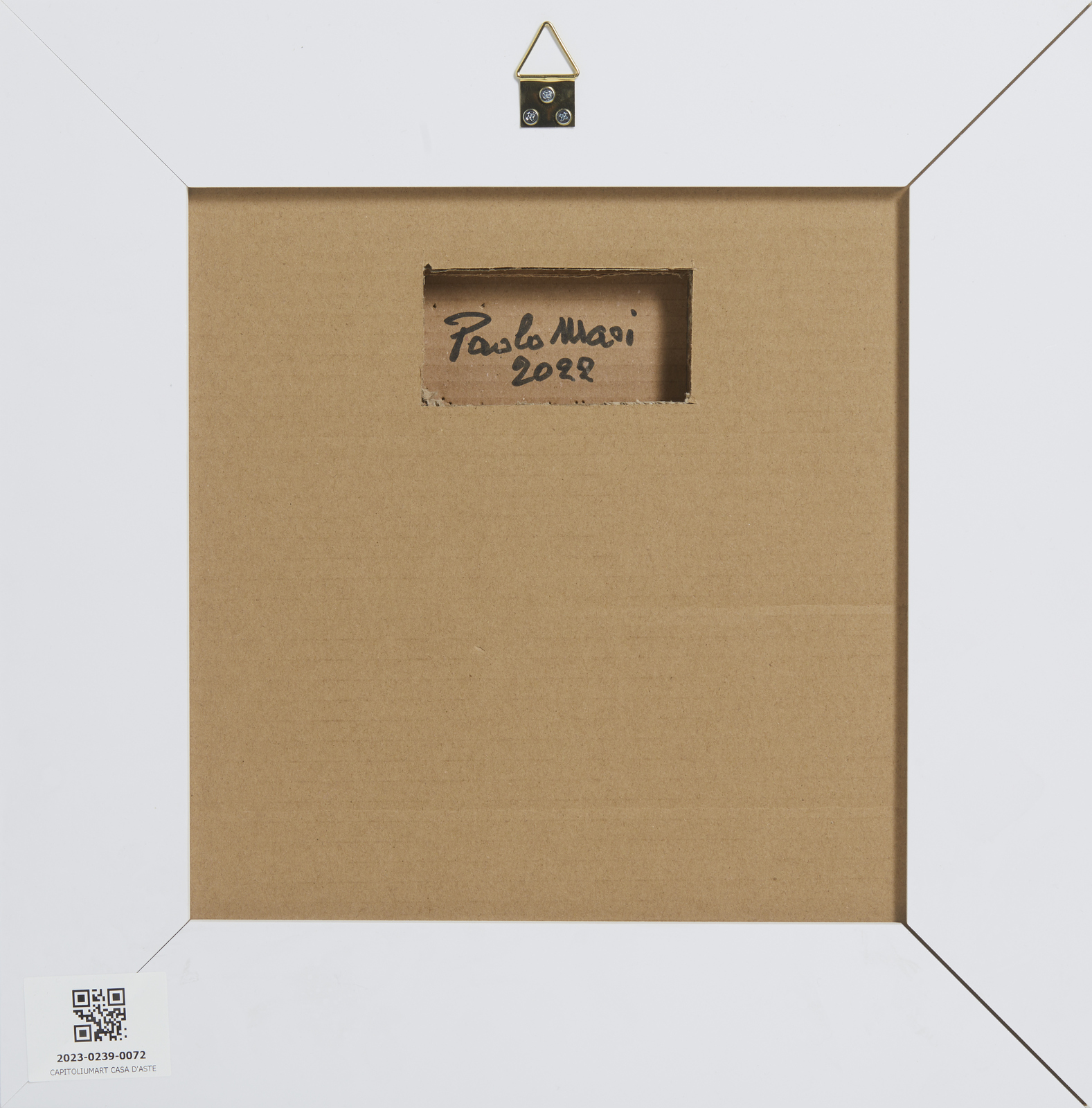 MASI PAOLO (n. 1933) Senza titolo. 2022. Tecnica mista su cartone. Cm 40,00 x 40,00. Al retro firma e anno a pennarello. Autentica dell'artista su fotografia. Entro teca in plexiglass.