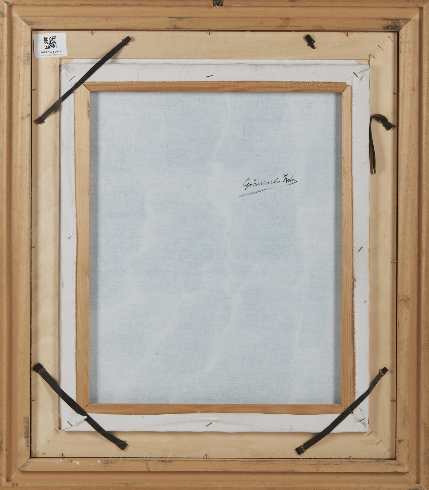 ISOLA GIANCARLO (n. 1927) Senza titolo. Olio su tela . Cm 50,00 x 60,00. Firma in basso a destra e al retro. Provenienza: Collezione privata, Bologna. Cornice presente