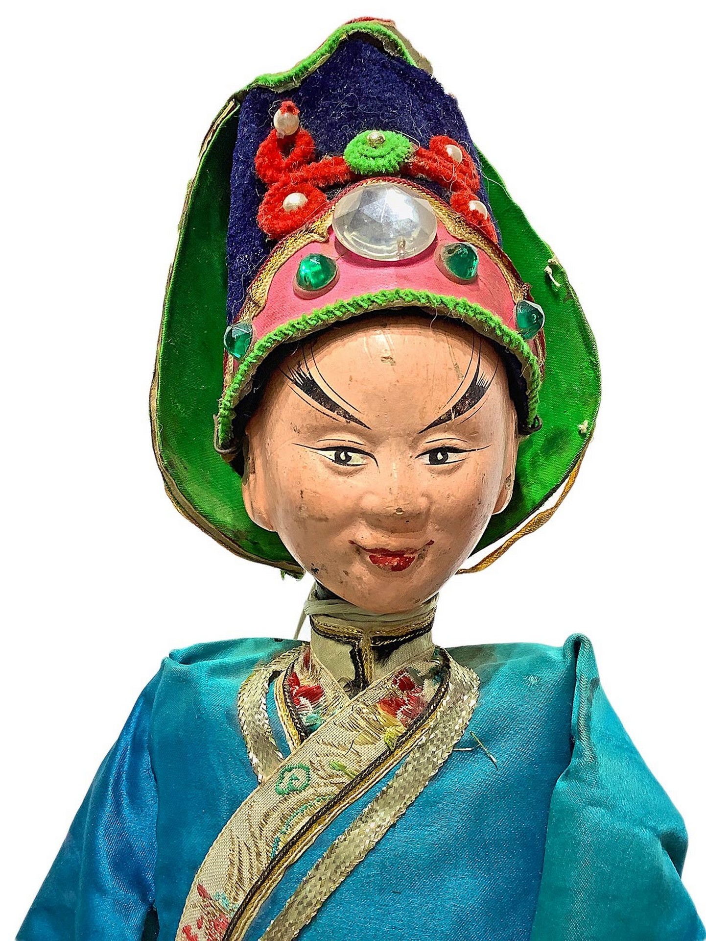Marionetta orientale, Cina H cm 50 circa Testa intercambiabile in terracotta e struttura in legno.