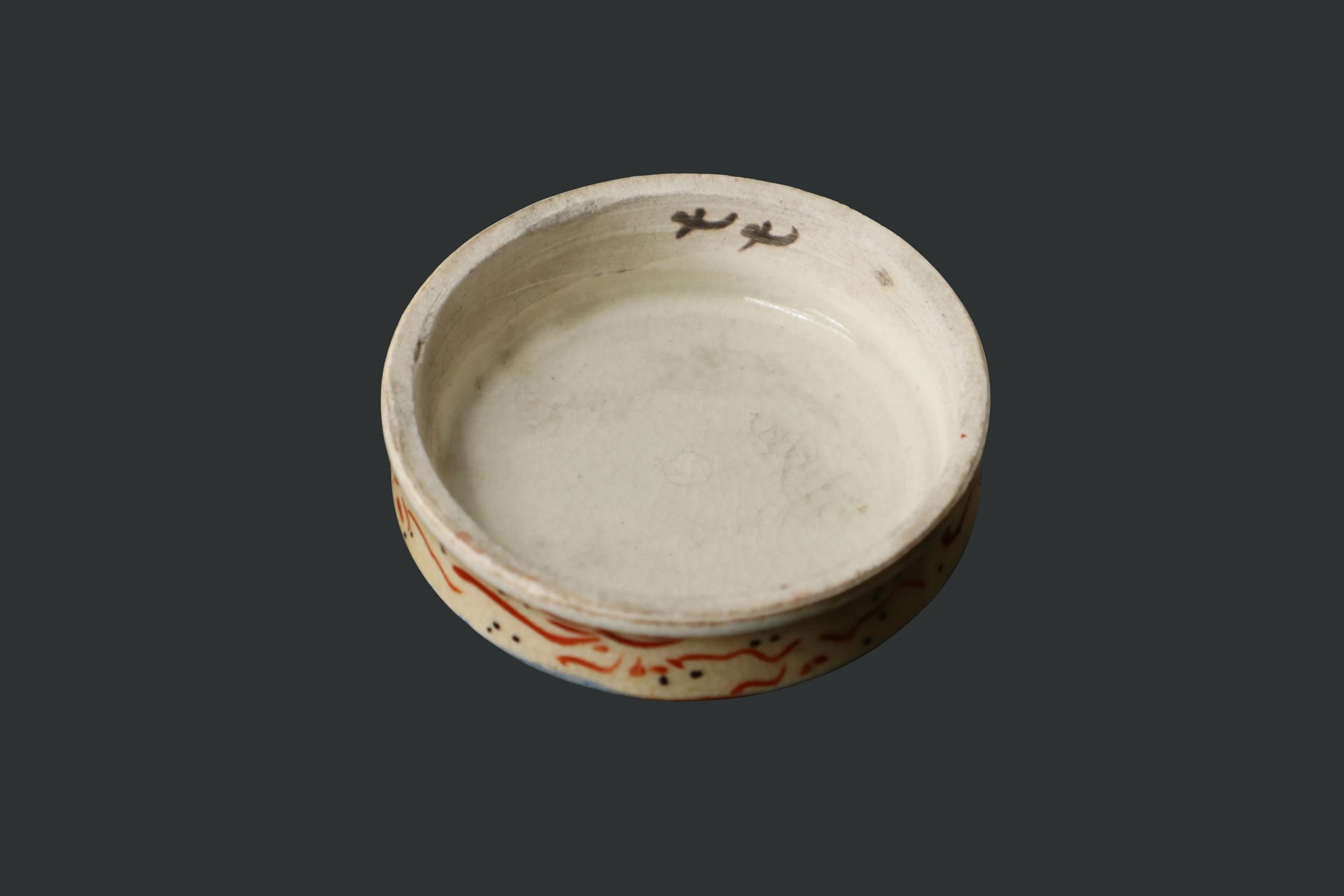 Dipinto a mano con colori vibranti in rosso ossido, nero, arancione e azzurro , giallo con placcato oro bon'applicato.