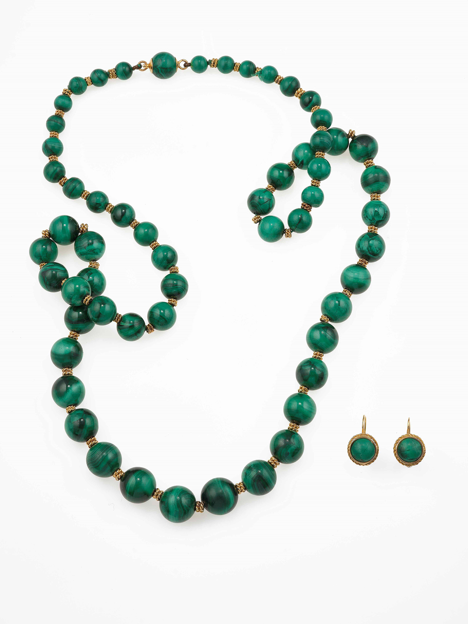 Demi-parure composta da collana ed orecchini con malachite