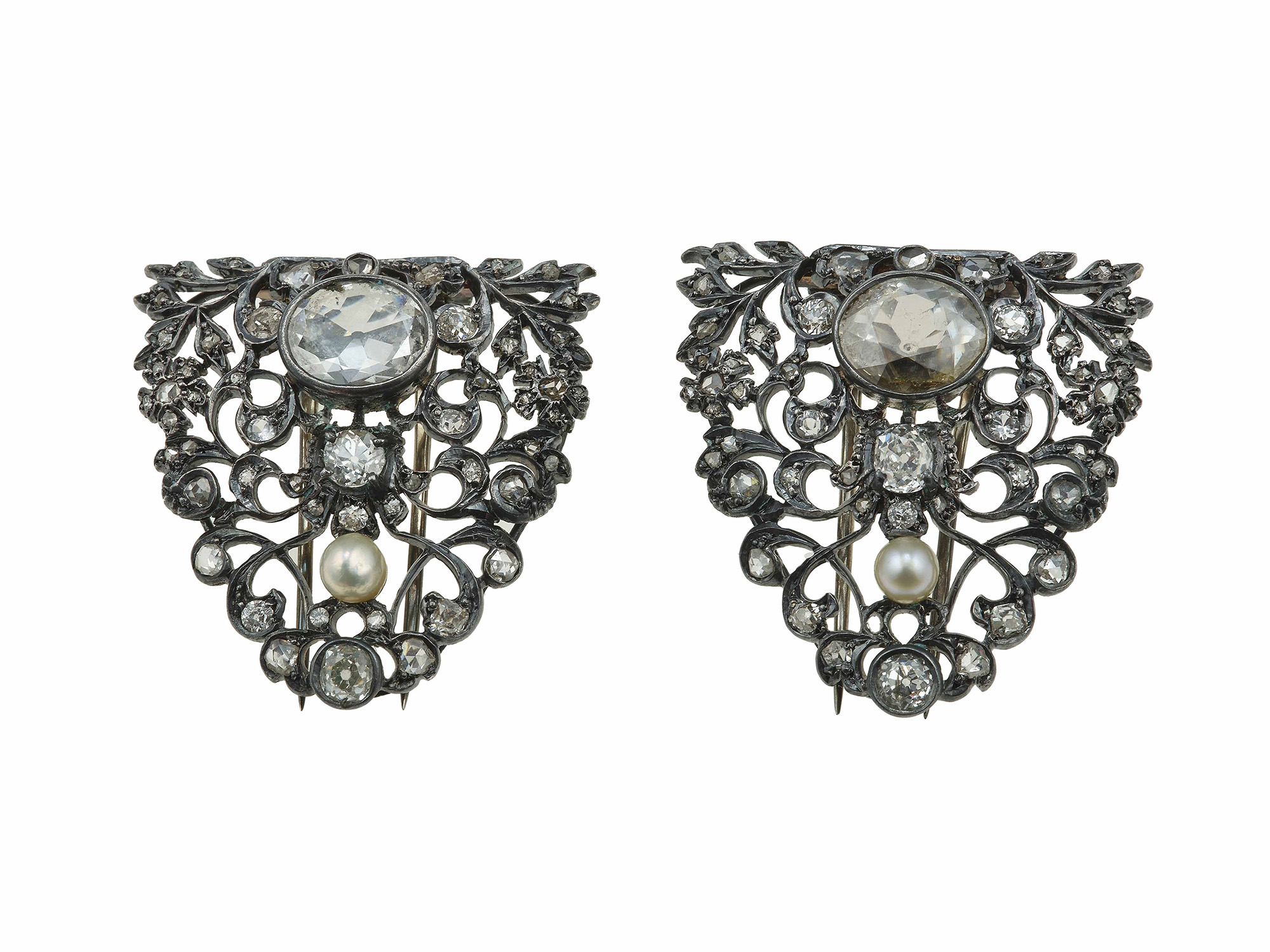 Douette con diamanti di vecchio taglio e piccole perle