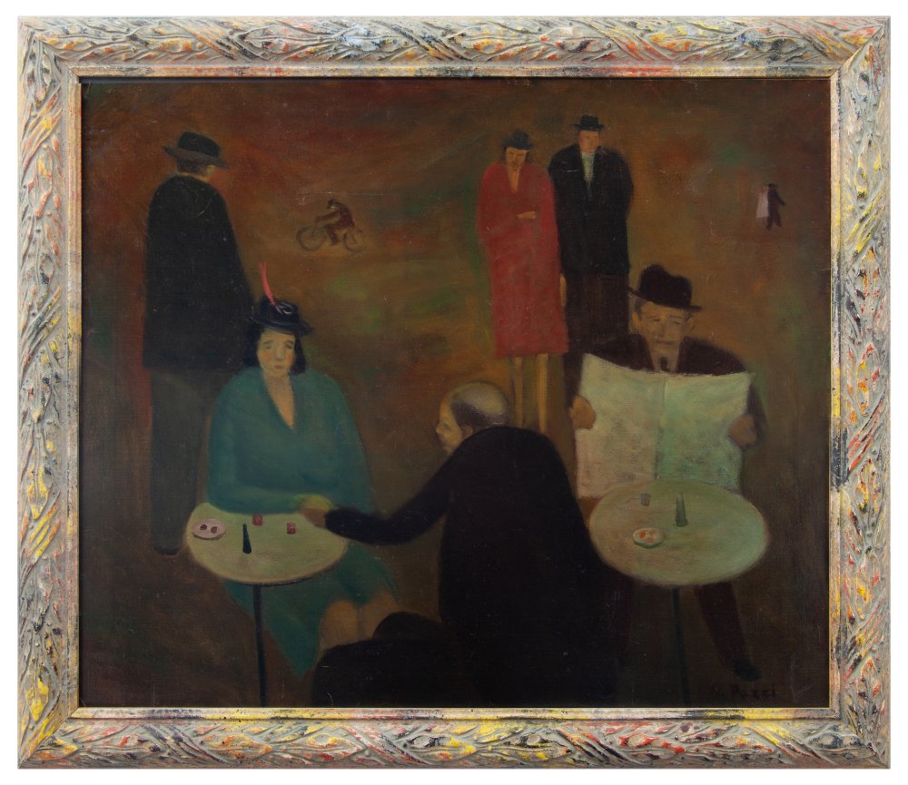 Valter Pozzi Bergamo 1911 - Milano 1989 Figure al bar Olio su tela cm 52x63