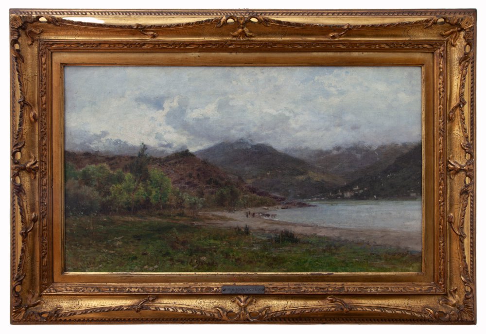 Eugenio Gignous Milano 1850 - Stresa (VB) 1906 Paesaggio lacustre Olio su tela cm 40x69