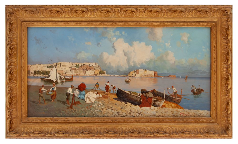 F. Scoppa Italia del Sud XX secolo Pescatori in spiaggia a Napoli