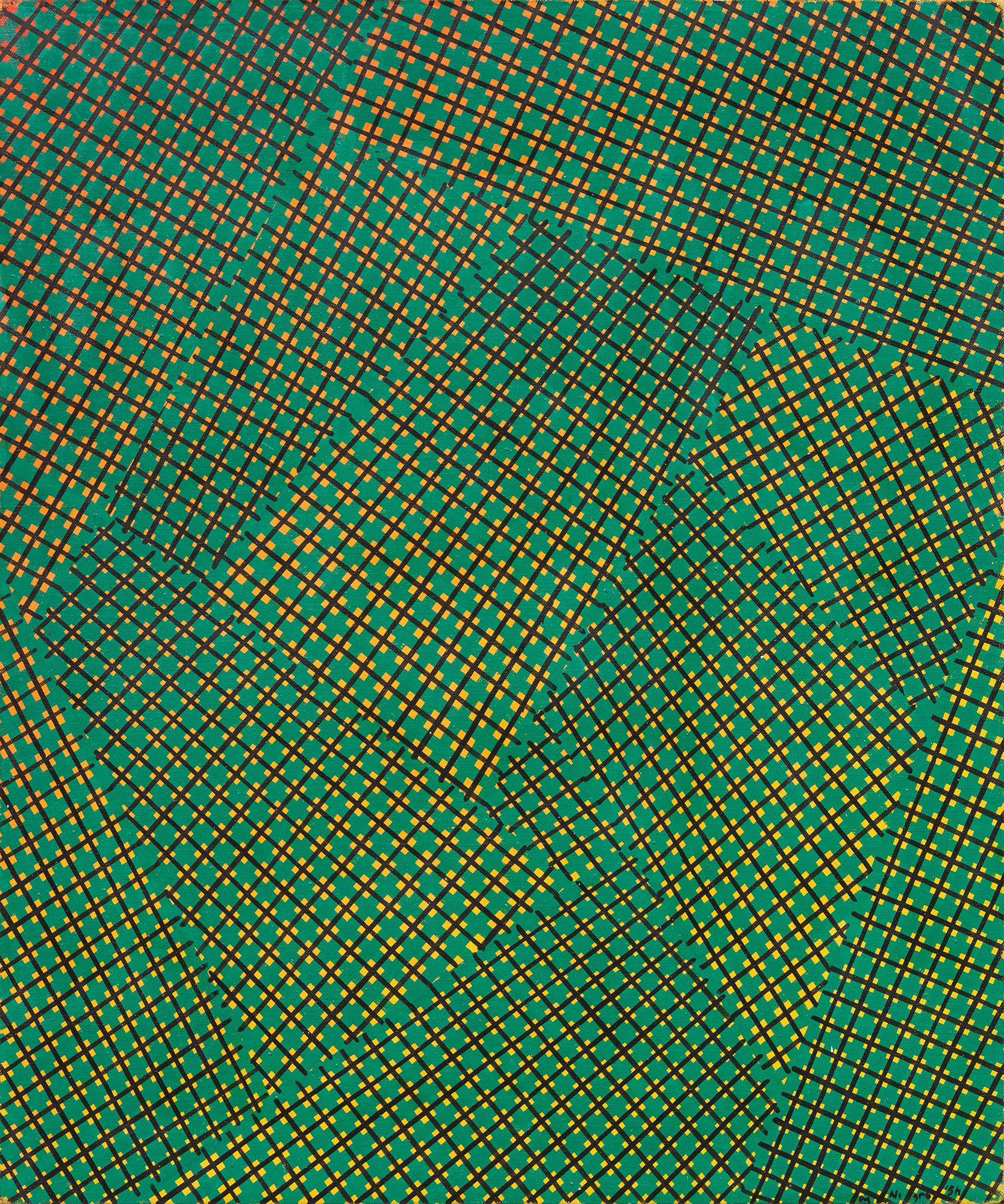 Firma e data in basso a destra: M. Nigro '54; firma, titolo e data al verso sulla tela: Mario Nigro "Spazio totale" [...] 1954-55;