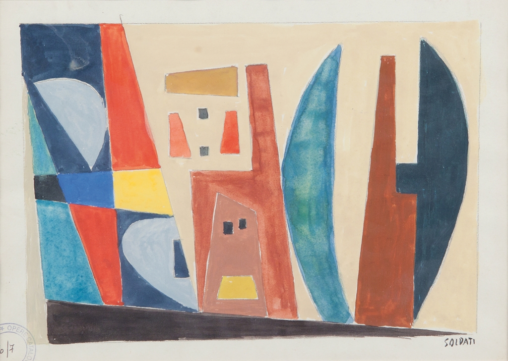 Lot 8 | ATANASIO SOLDATI (1896-1953) Composizioneacquerello su carta cm 19x26firmato...