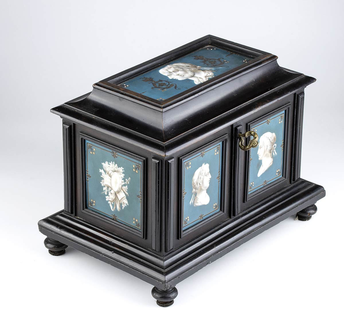 Scrigno nuziale viennese in legno e smalti - 1870 circa, firmato AUGUST KLEIN