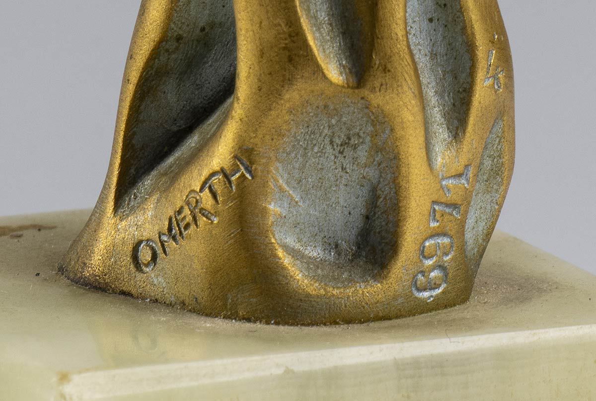 Scultura francese in bronzo raffigurante ballerina con abito dorato - firmata OMERTH