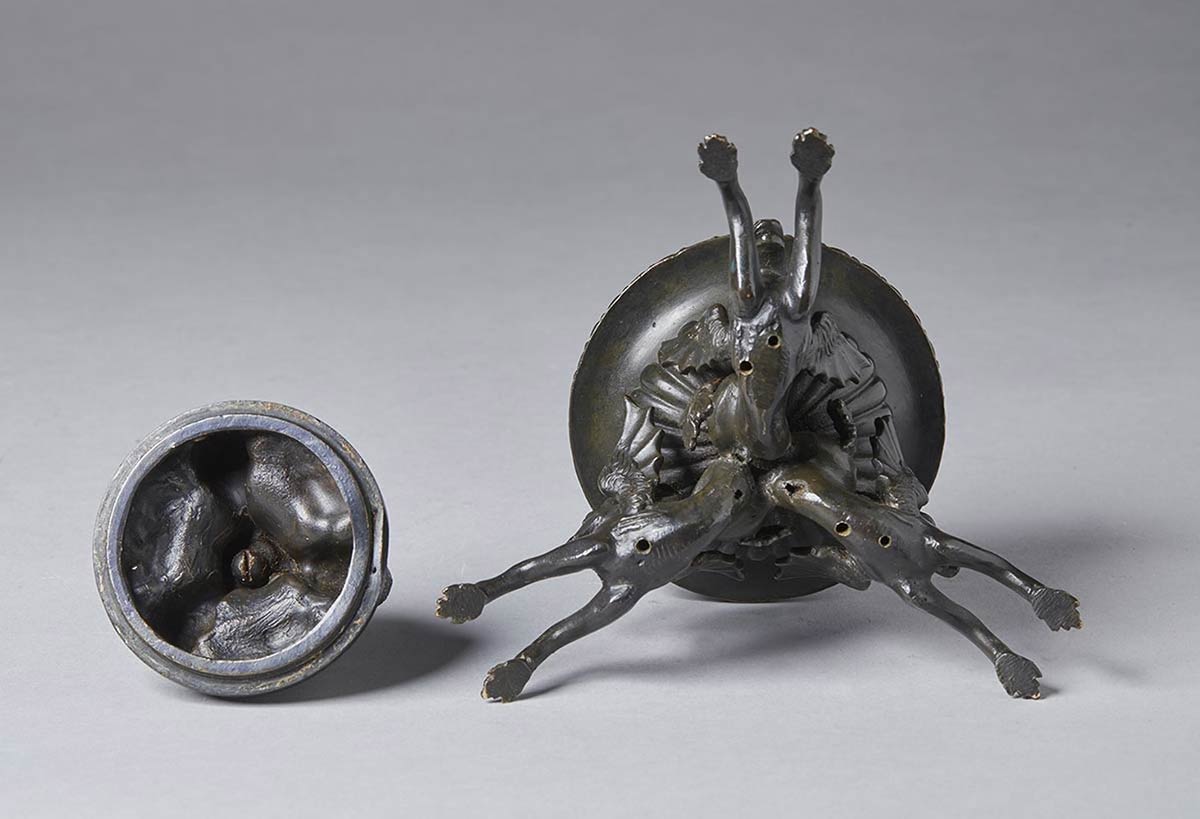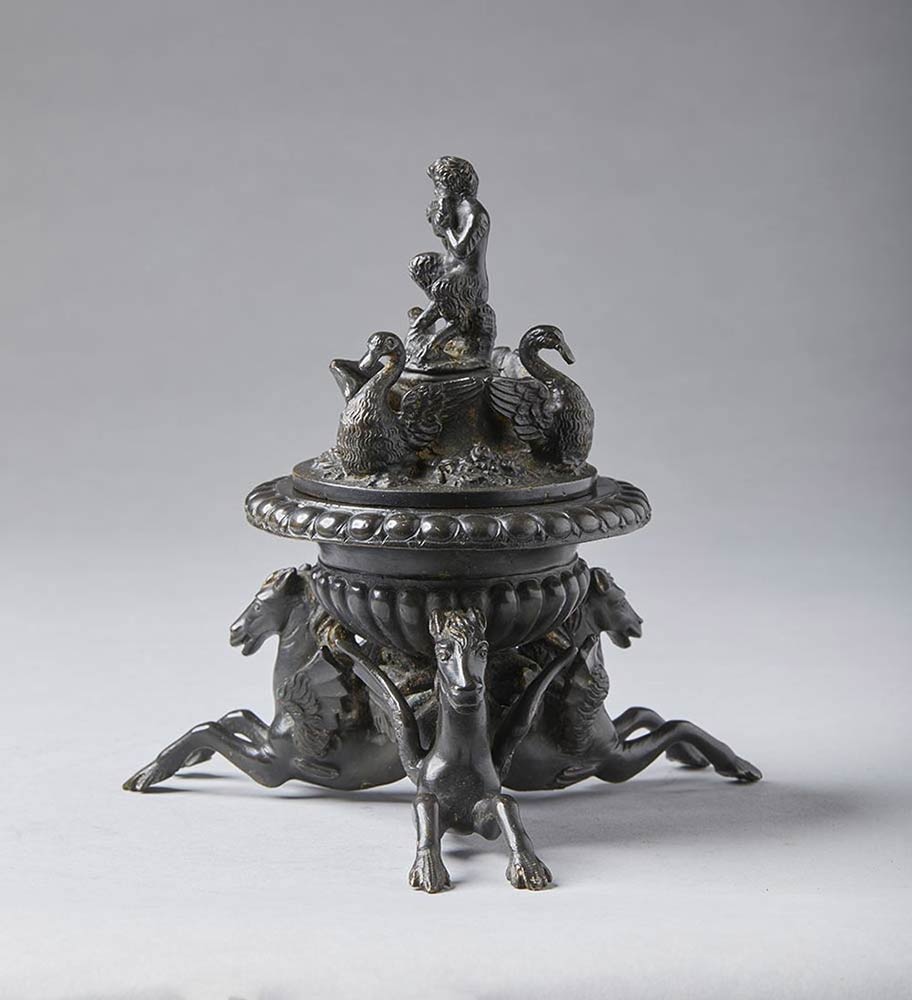 Calamaio in bronzo con ippocampi - XIX secolo