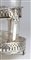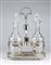 di forma ovale con bordo traforato, poggiante su quattro piedini; presa centrale con due ampolle laterali in vetro. Argento 800/1000, punzonata con i marchi in uso a Genova, Regno di Sardegna dal 1824 al 1872.