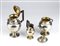 Dimensioni e pesi: caffettiera, altezza 14,5 cm, larghezza con manico 12 cm, peso 195 gr; zuccheriera, altezza 13,5 cm, larghezza con manici 11 cm, peso 146 gr; bricco da latte, altezza 10 cm, larghezza con manico 8 cm, peso 68 gr.