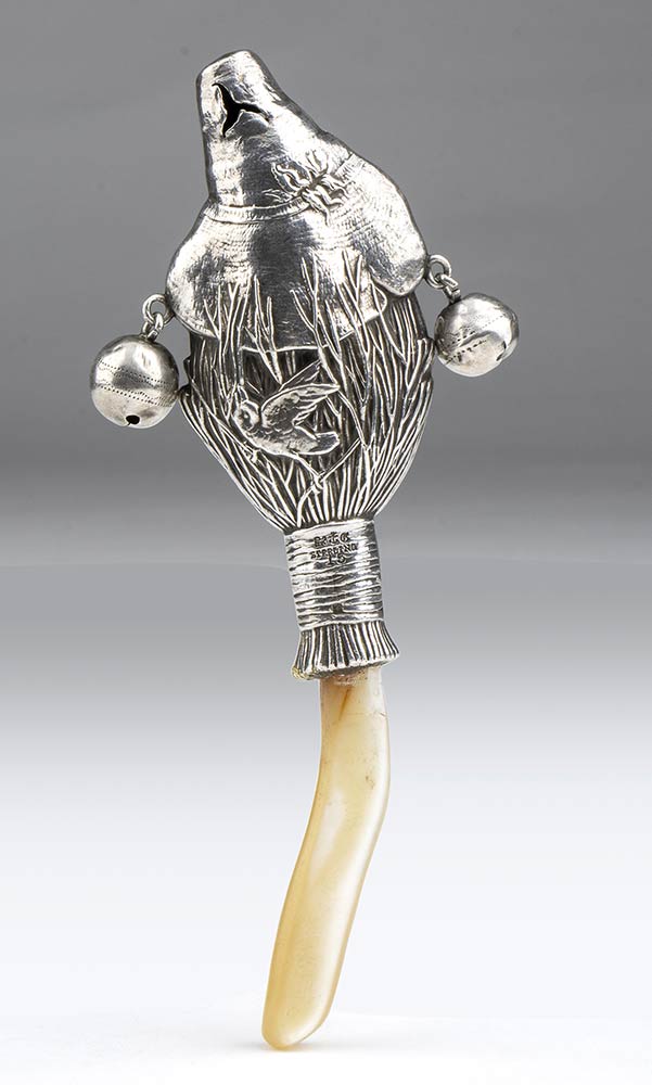 Lot 98 | Sonaglio americano con fischietto in argento e madreperla - argentiere Gorham Manufacturing company