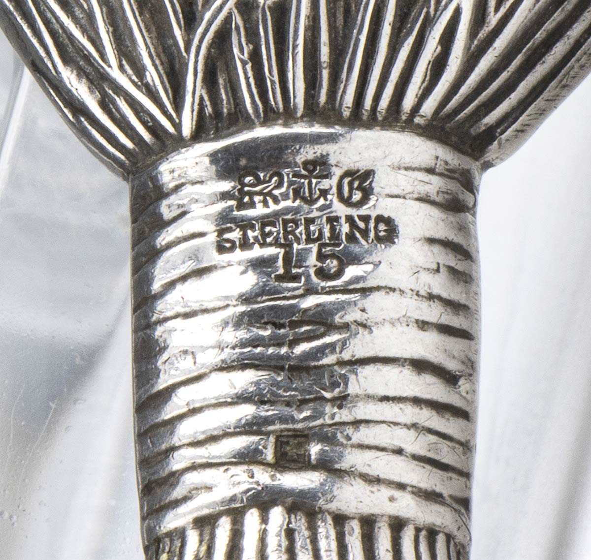 con campanelle e terminale in madreperla. Argento 925/1000, serie completa di marchi Gorham in uso nel XIX secolo.