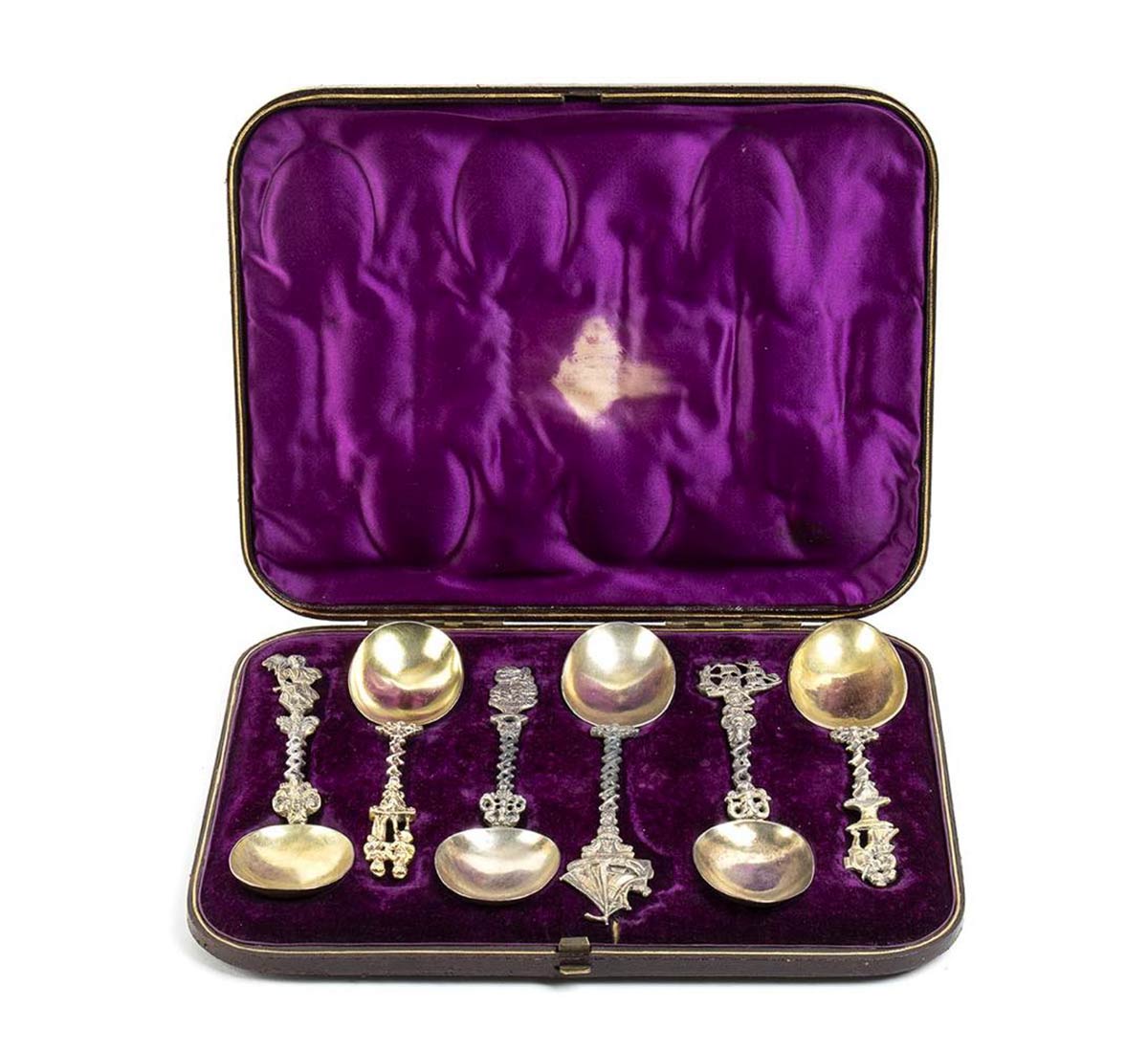 Gruppo di sei cucchiai continentali in argento - Nord Europa, probabilmente XIX secolo