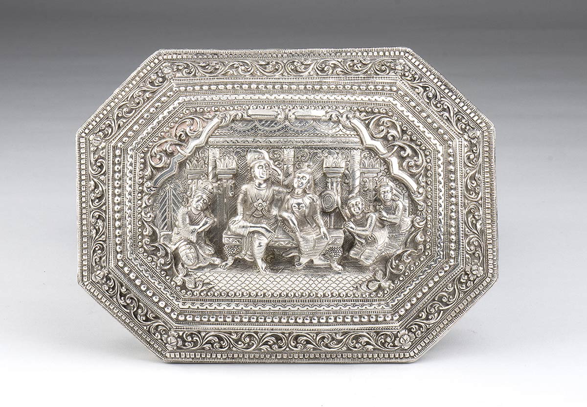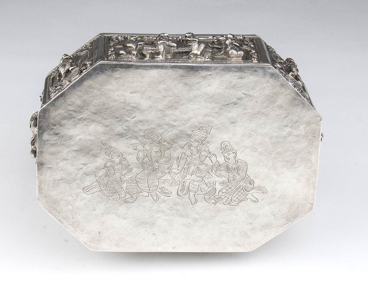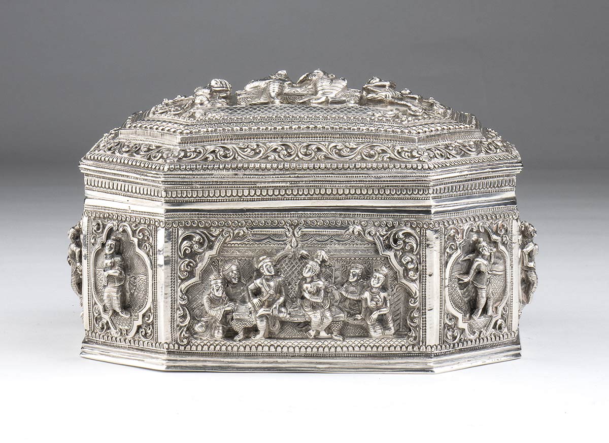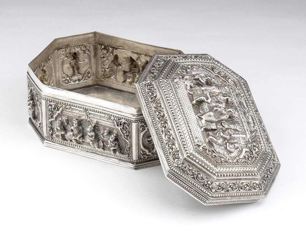 Cofanetto ottagonale in argento - Birmania, XIX secolo