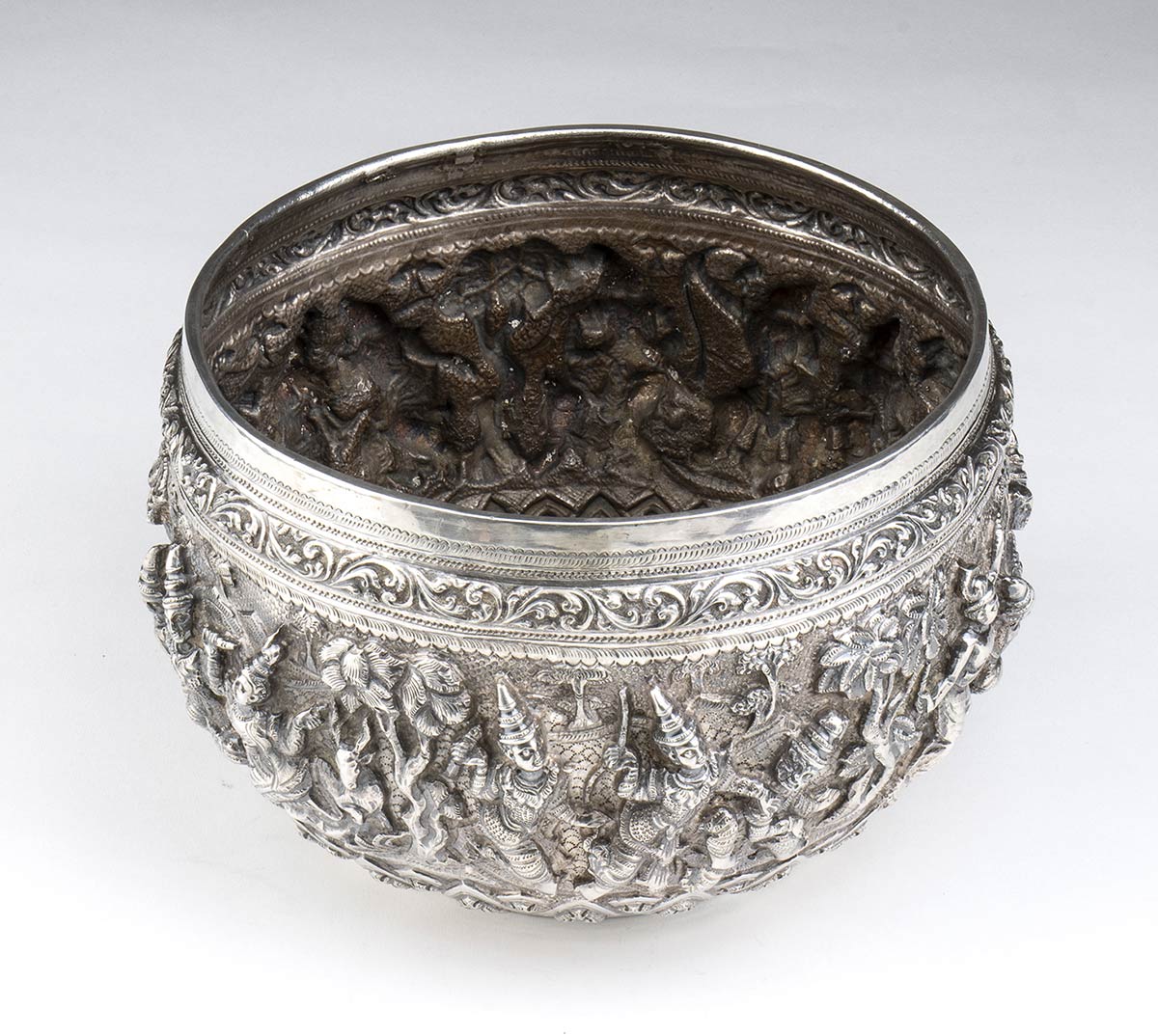 Ciotola Thabeik in argento - Birmania, XIX secolo