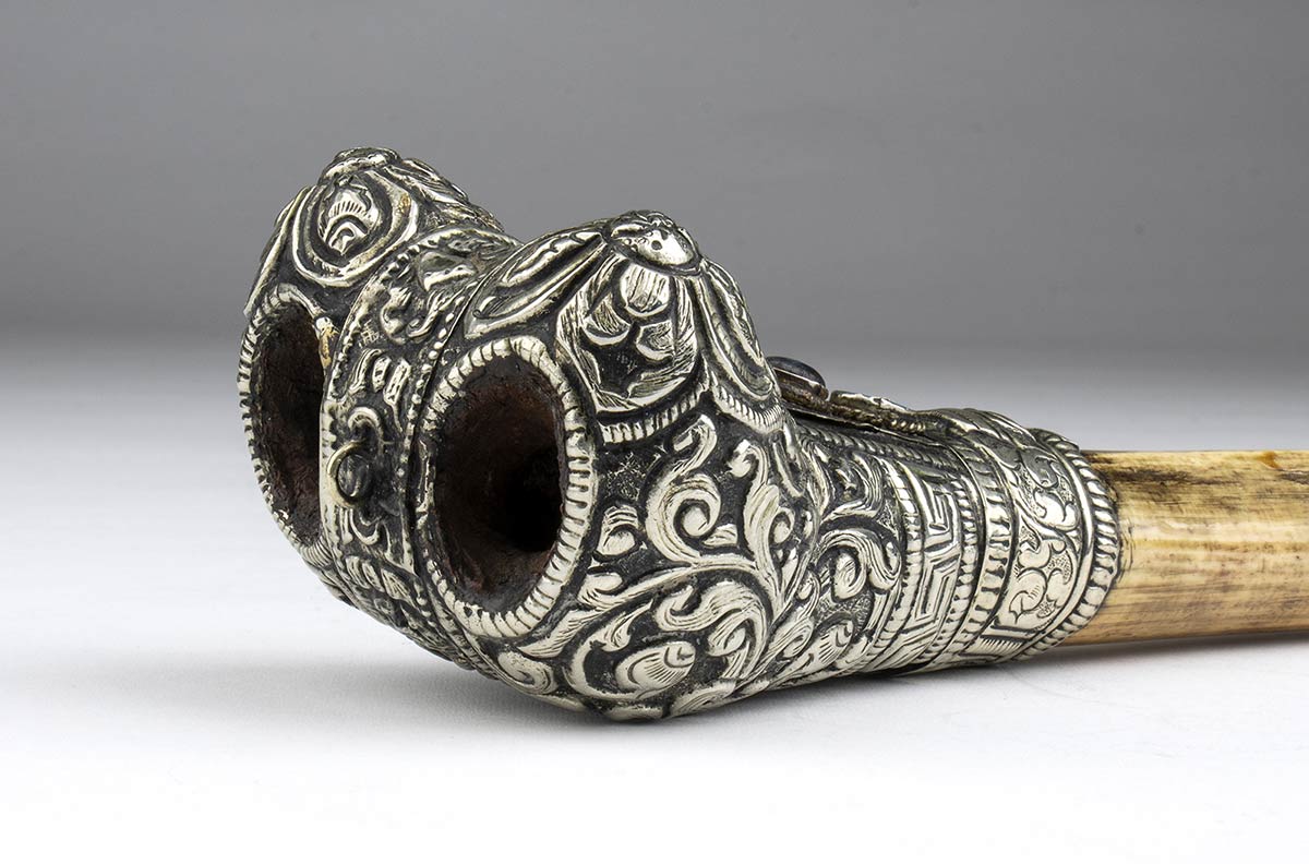 Trombetta tibetana in argento e osso - fine XIX secolo