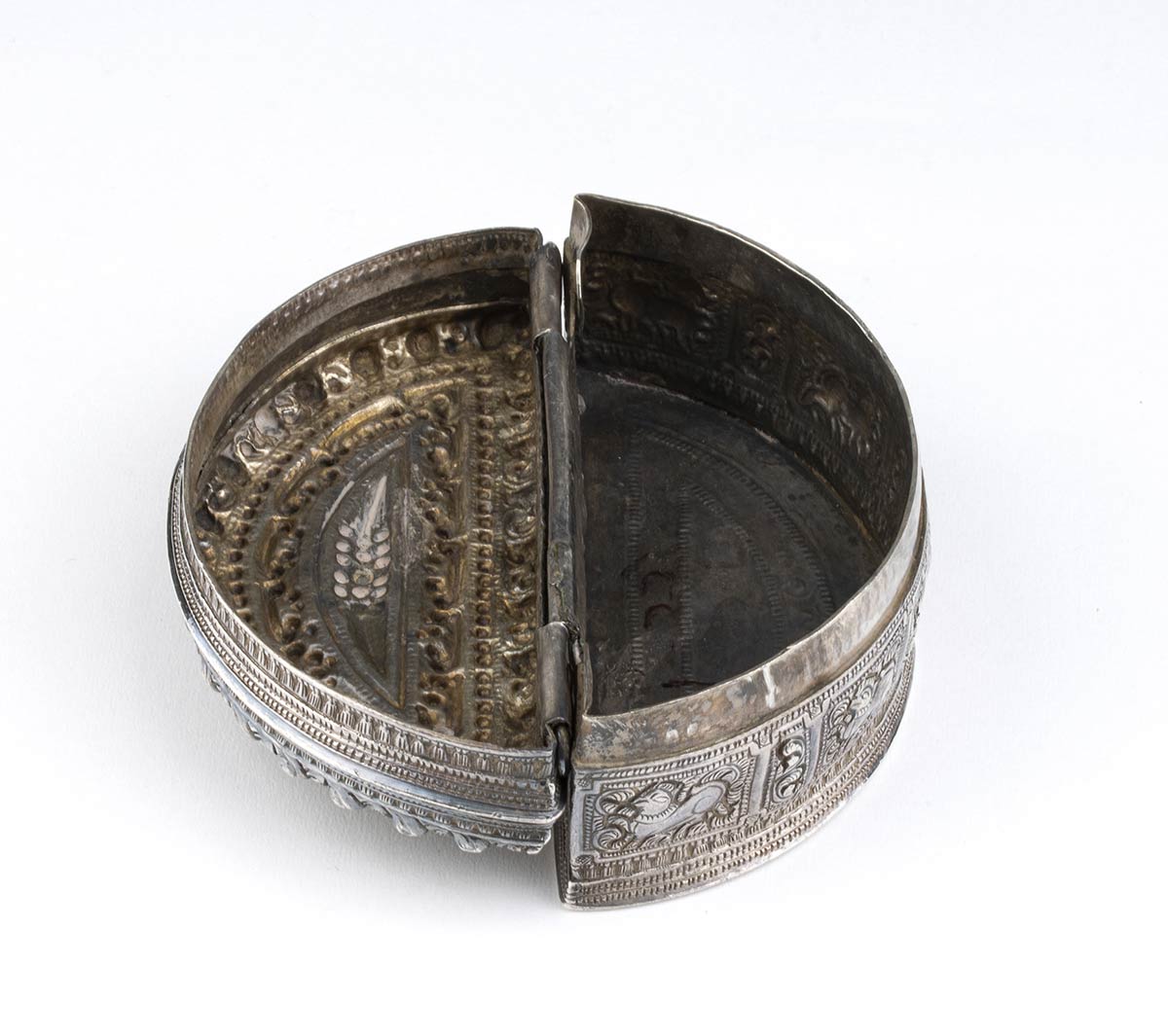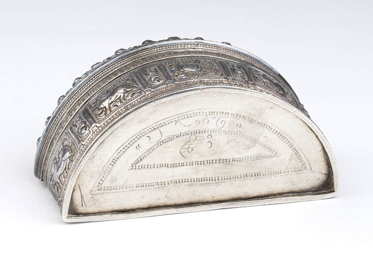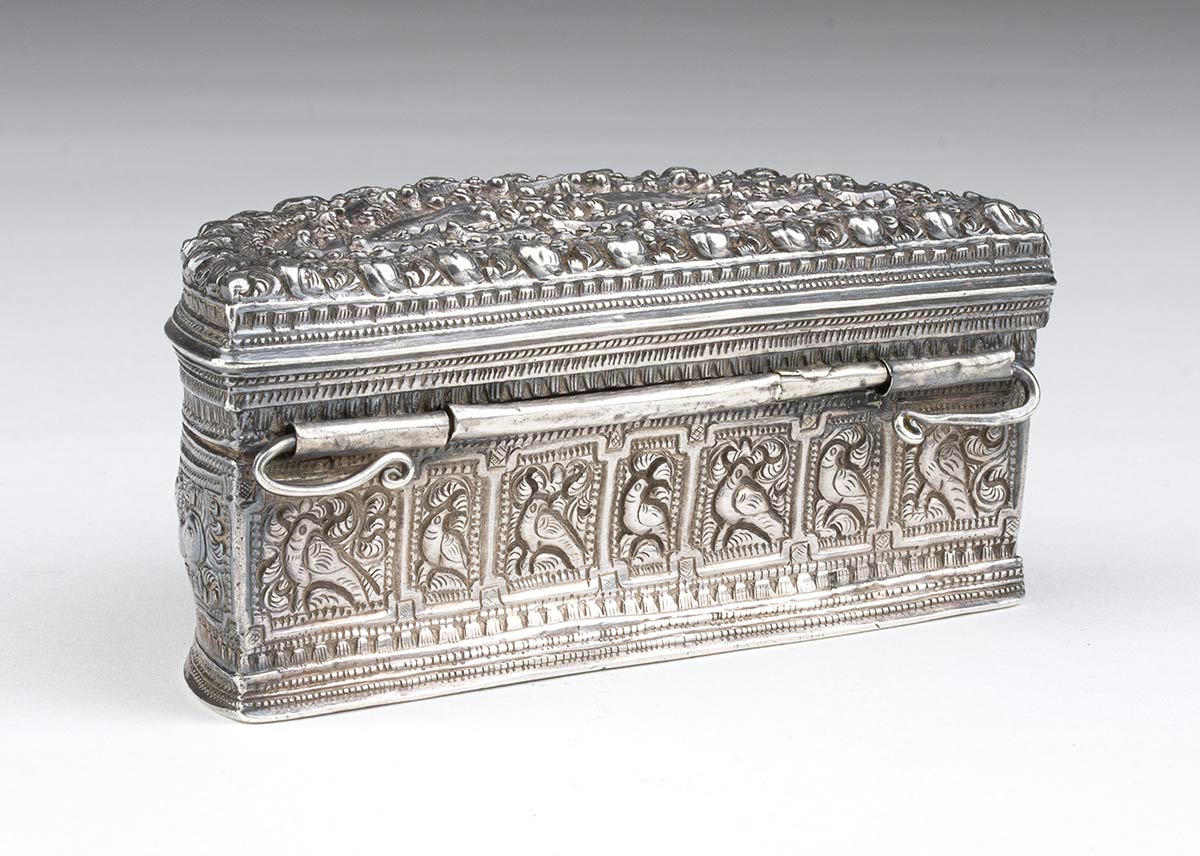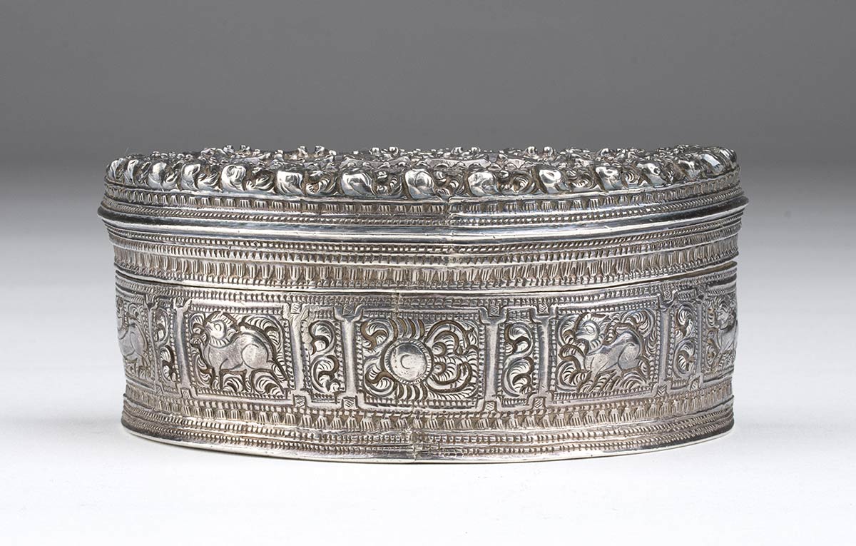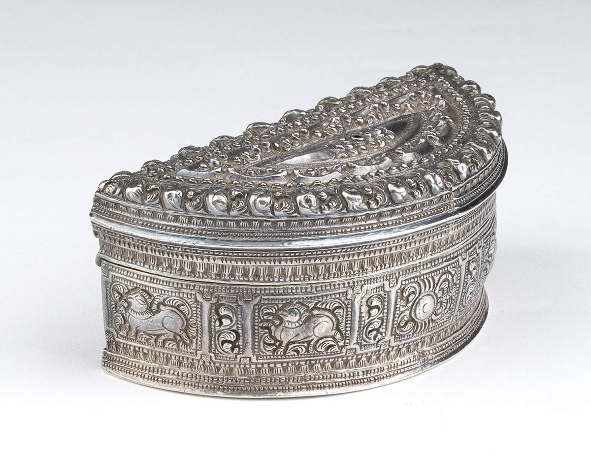 Scatola a mezzaluna in argento - Birmania, XIX secolo