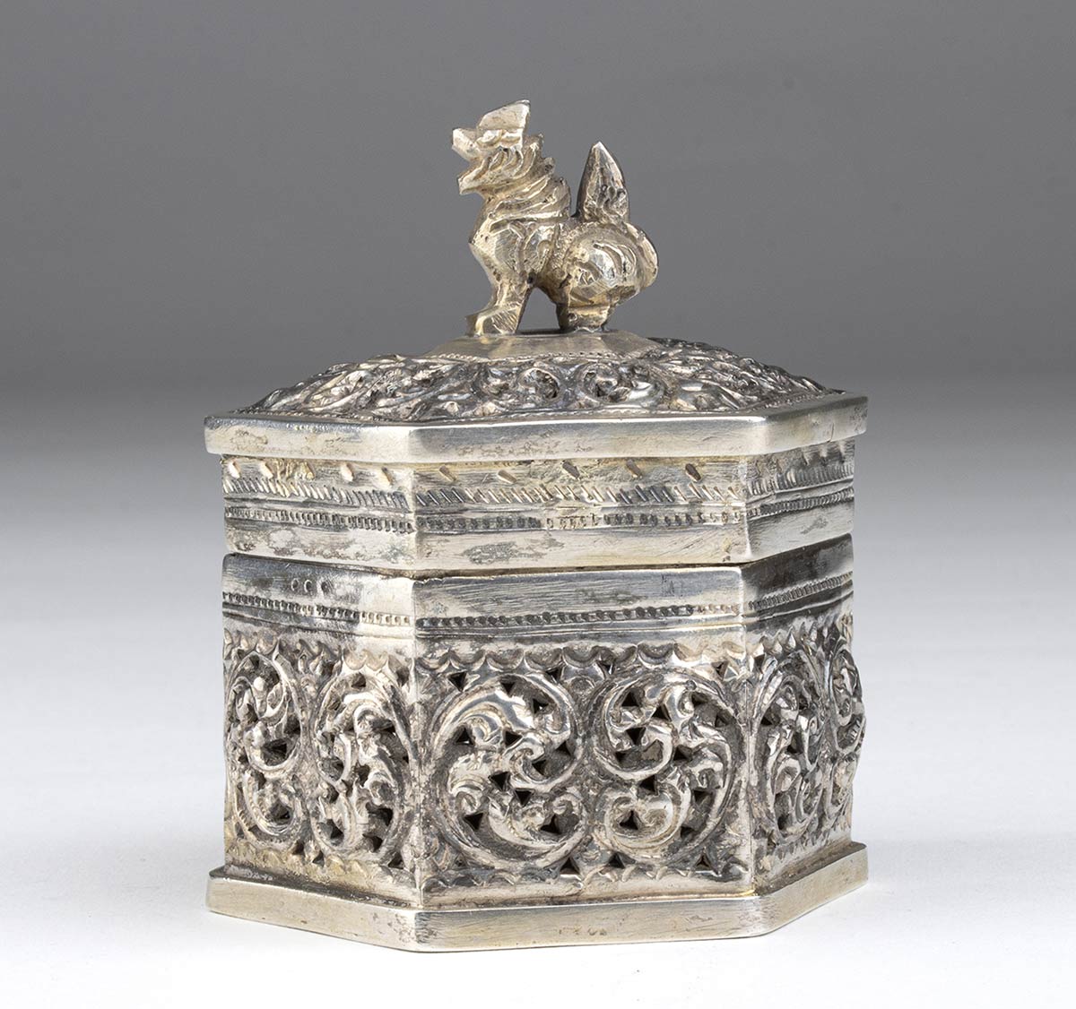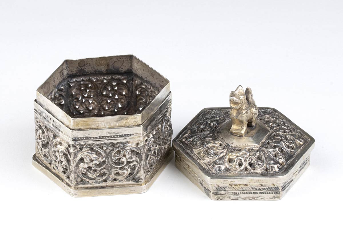 Scatola esagonale in argento - Birmania, fine XIX secolo
