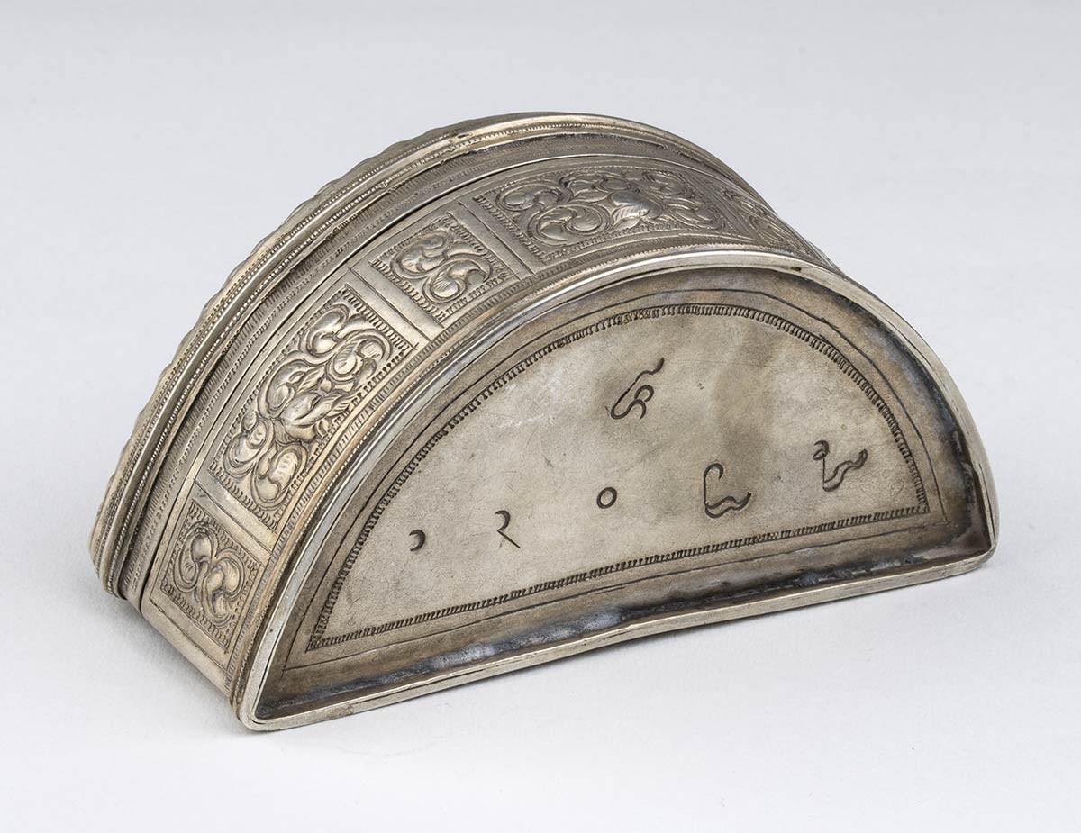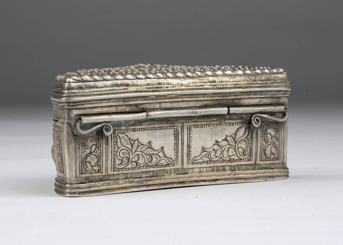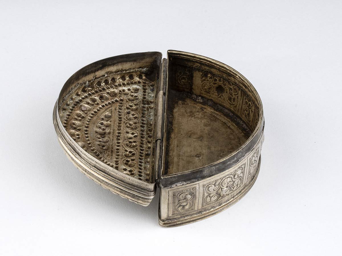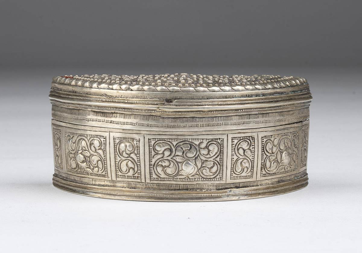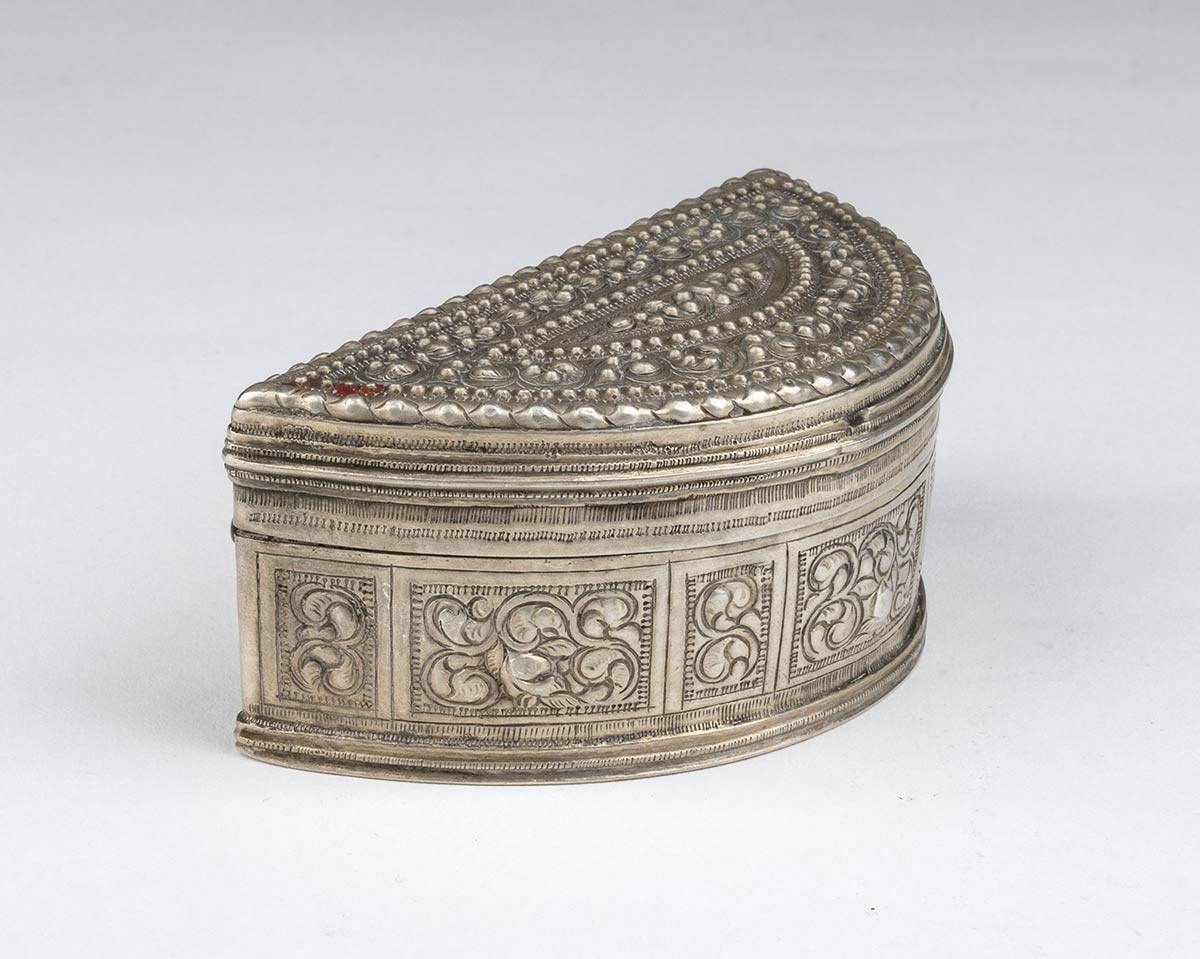 Scatola a mezzaluna in argento - Birmania, XIX secolo