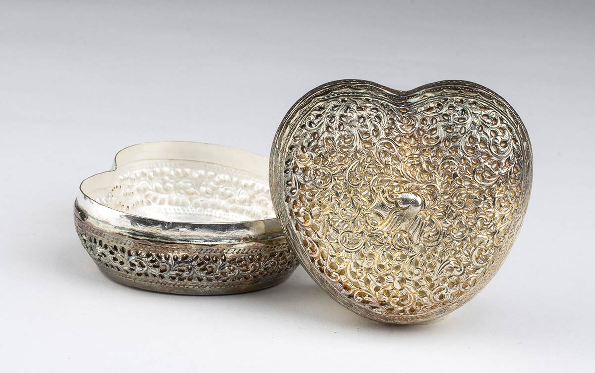 Scatola in argento a forma di cuore - Birmania, XX secolo