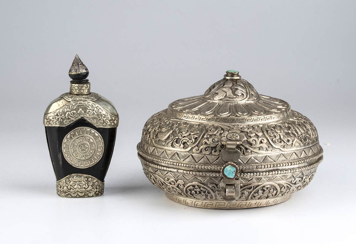 Lotto composto da snuff bottle e scrigno - Birmania, inizio XX secolo