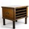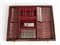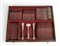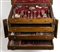 Contenitore originale in noce a 3 cassetti, coperchio apribile con iscrizione interna "CALDERONI - MILANO - FILIALI BARI - ASMARA - ADDIS ABEBA".