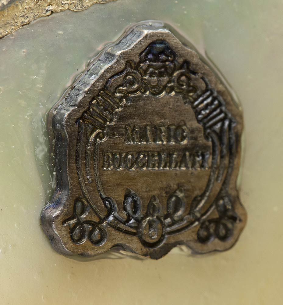 conchiglia Nautilus Pompilius, firmata Mario Buccellati su etichetta nella parte interna. Corredata di scatola originale.