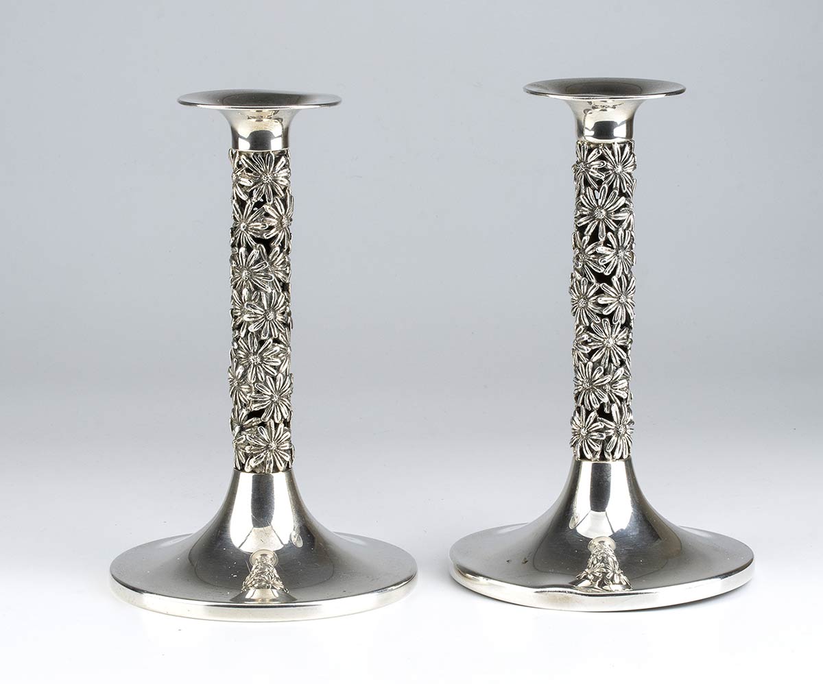 Coppia di candelieri italiani in argento - XX seccolo, argentiere RASPINI GIOVANNI