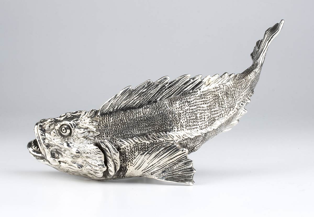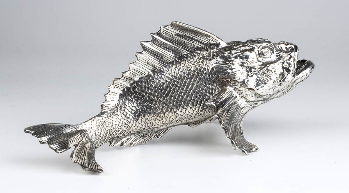 Lot 210 | Coppia di sculture in argento raffiguranti pesci, firmate ATTILIO DE LUCA