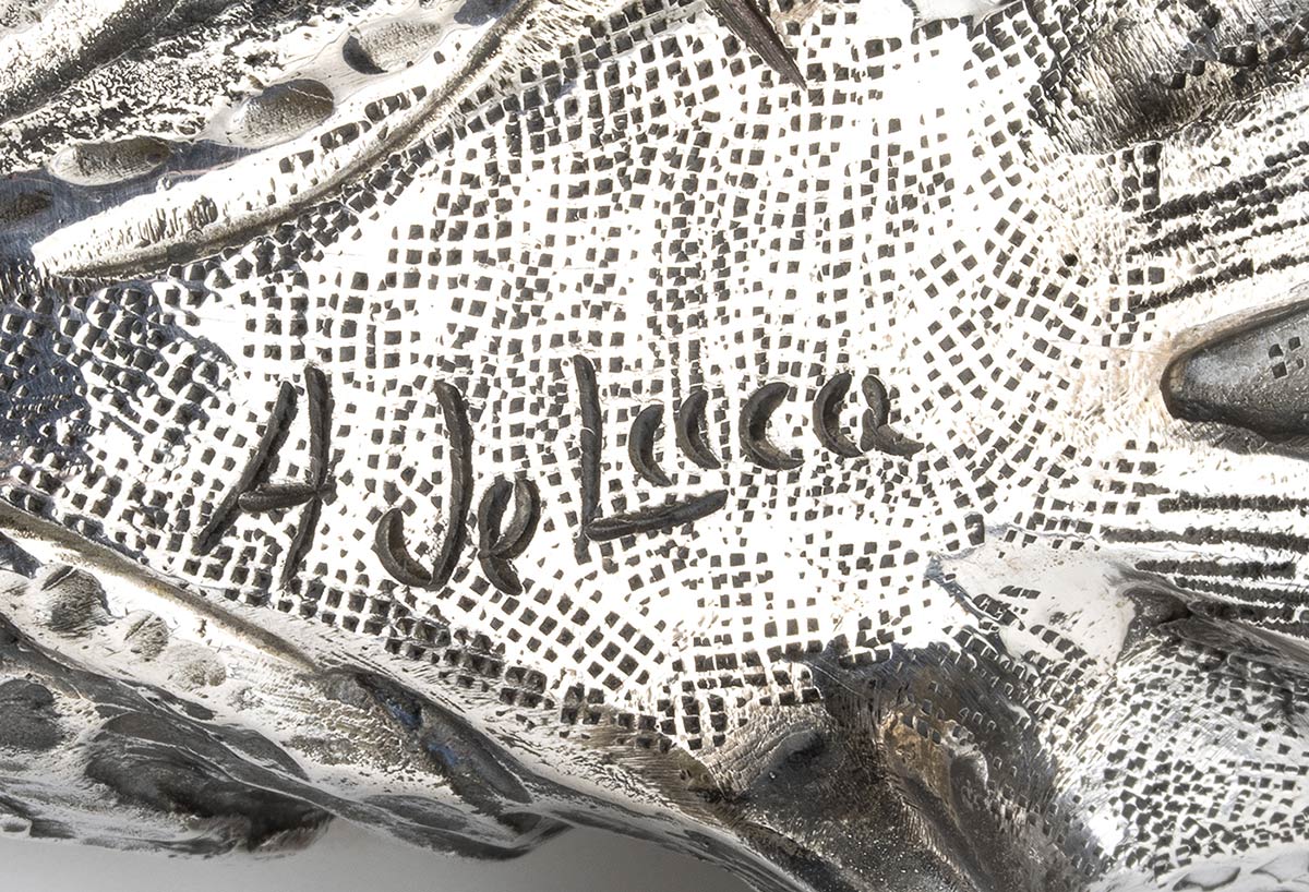 realizzate in fusione a "cera persa" e poi cesellate a mano. Argento 800/1000, punzonate "* 221NA - fonderia Delmar". La storica fonderia Delmar-Gemito fu fondata nel 1887 da Vincenzo De Luca e dallo scultore napoletano Vincenzo Gemito. Vincenzo De Luca, maestro artigiano specializzato nella fusione bronzea era il nonno dell'attuale amministratore della fonderia, il maestro e modellista Attilio De Luca (1930-...).