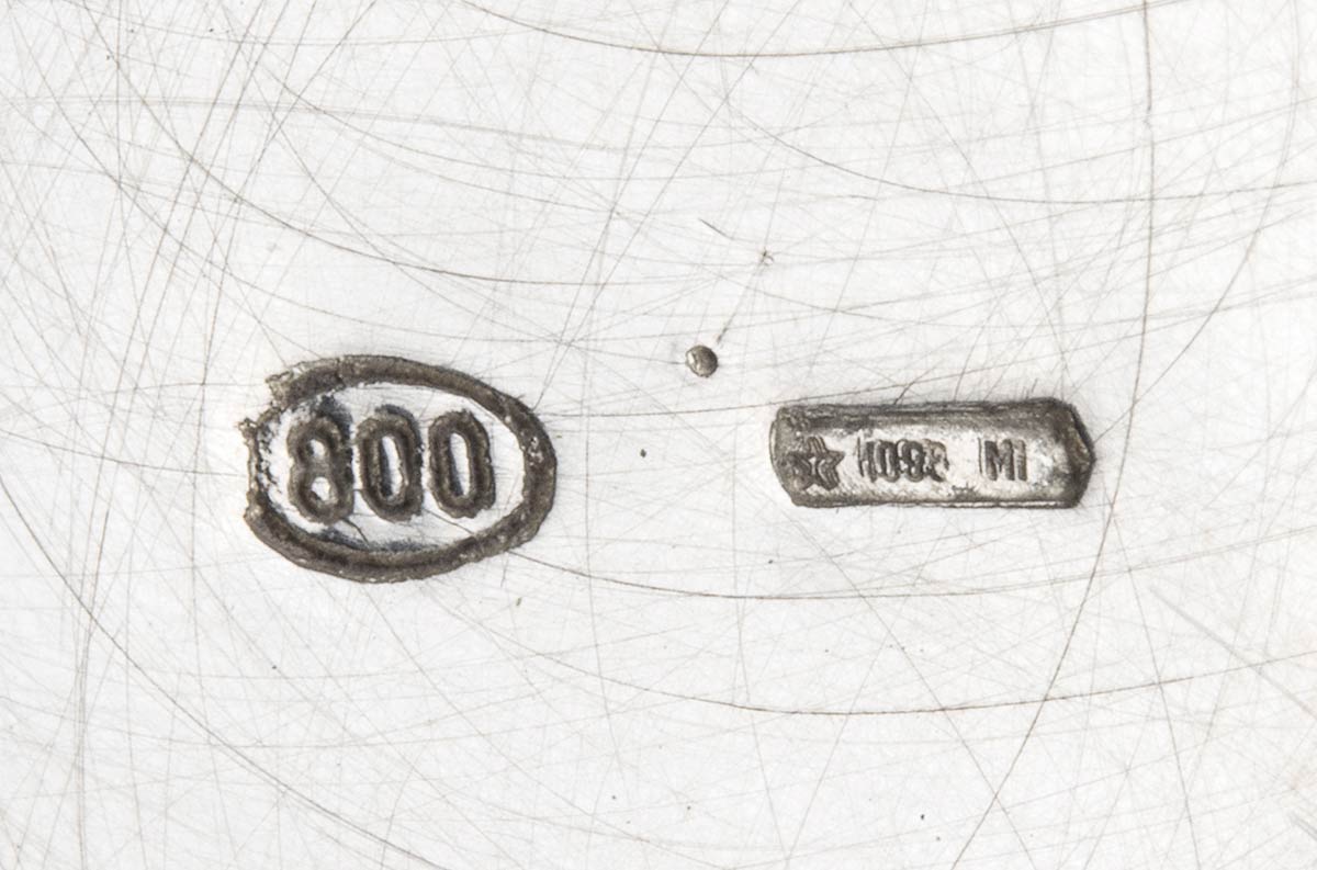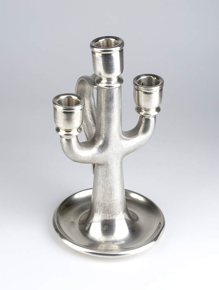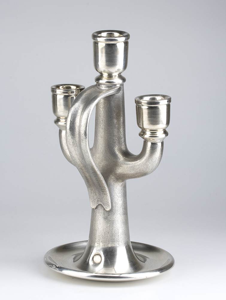 a tre fiamme, a forma di cactus stilizzato. Argento 800/1000, punzonato "* 1098 MI".