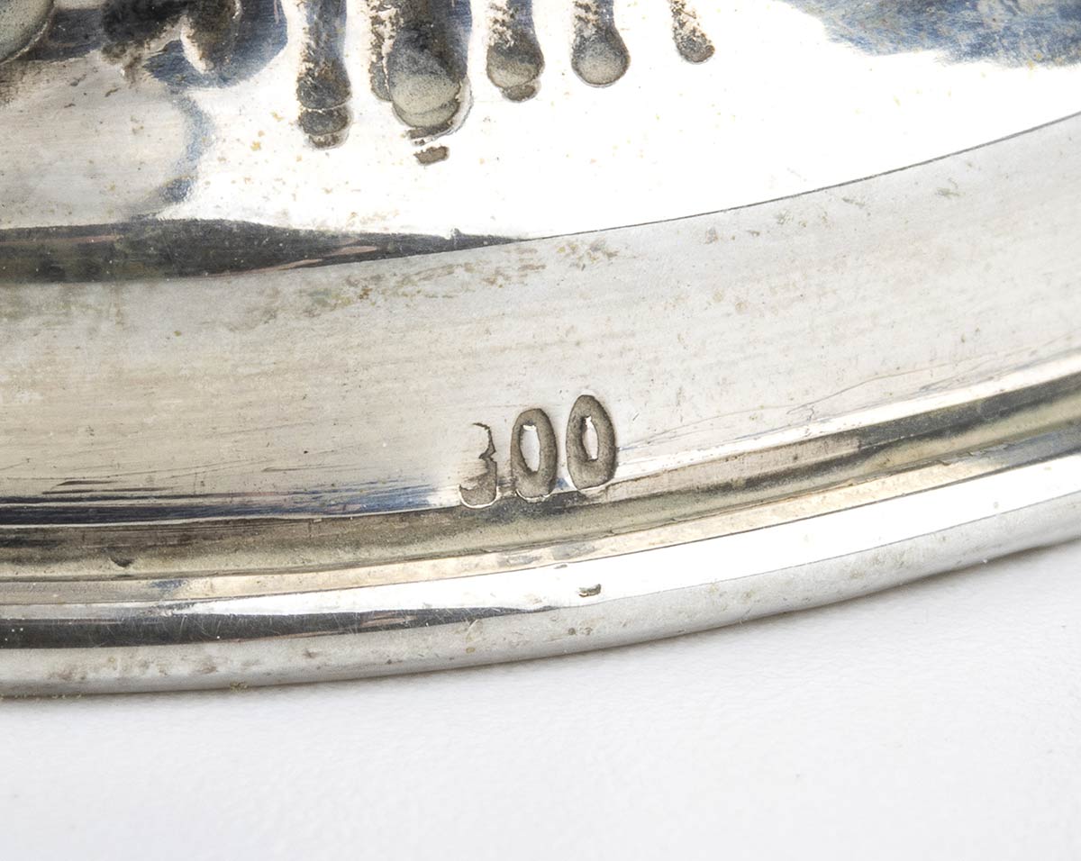 di forma circolare, a decori floreali alternati, coperchio con chiusura ad innesto. Argento 800/1000, punzonato "Argenteria Barraja - 800".