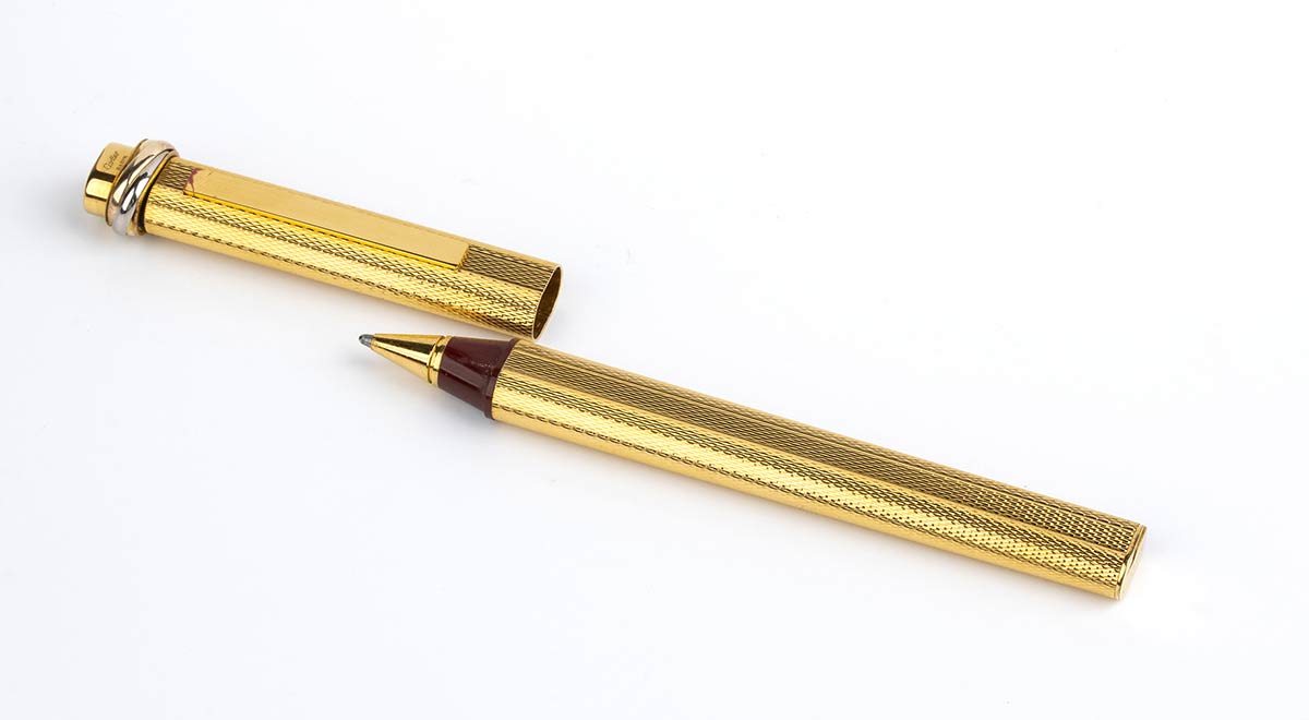 corpo e cappuccio placcati in oro; premendo la parte superiore del cappuccio la clip si apre alla larghezza desiderata, rilasciando la pressione la clip ritorna nella sua posizione originale. Numero di serie 509436.