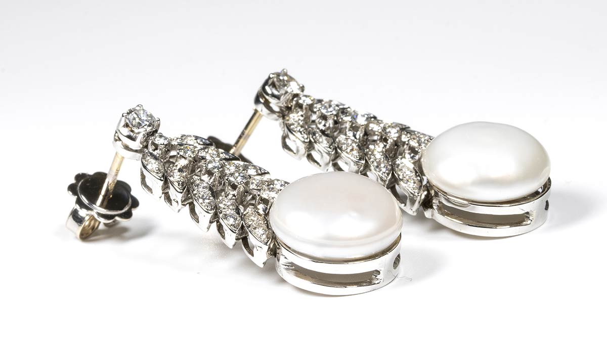 VENTRELLA ROMA: demi parure composta da un girocollo ed un paio di orecchini in oro, diamanti e perle di fiume