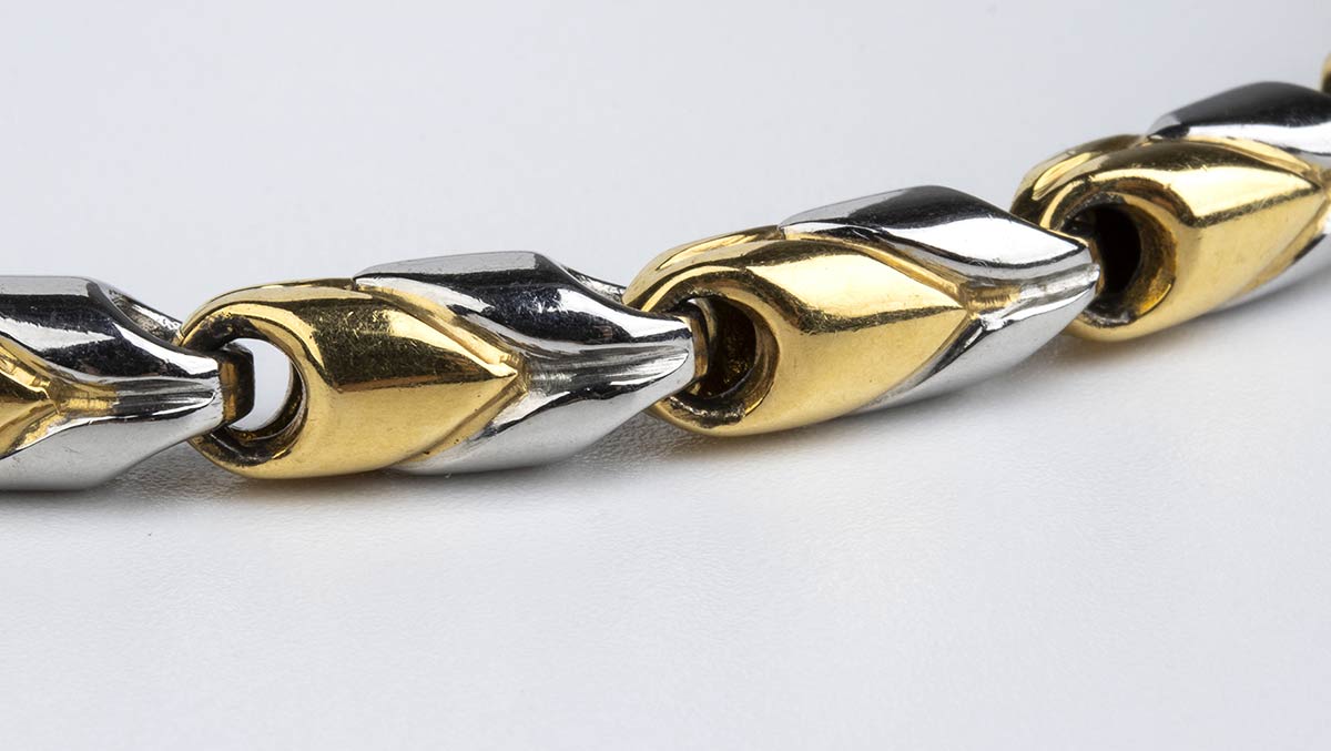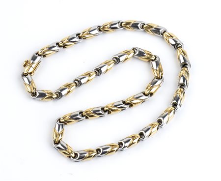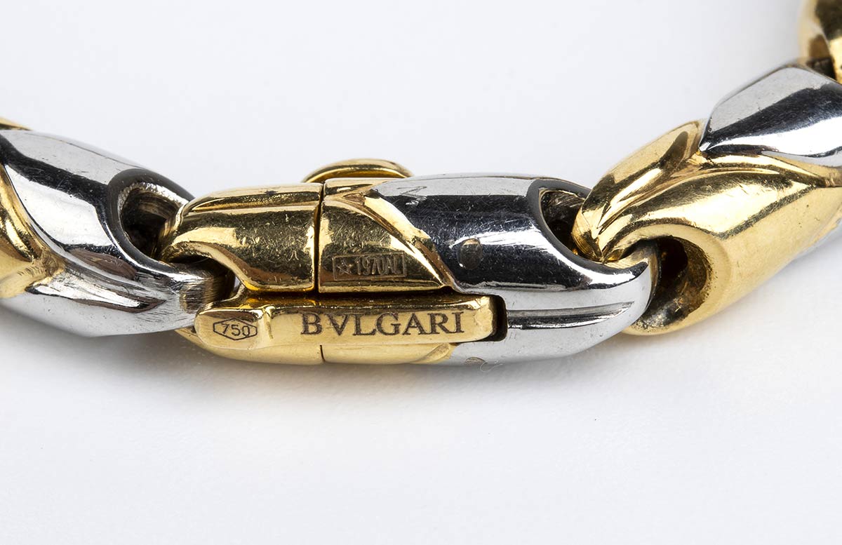 a maglie articolate in oro giallo 18k ed acciaio. Firmato BULGARI.