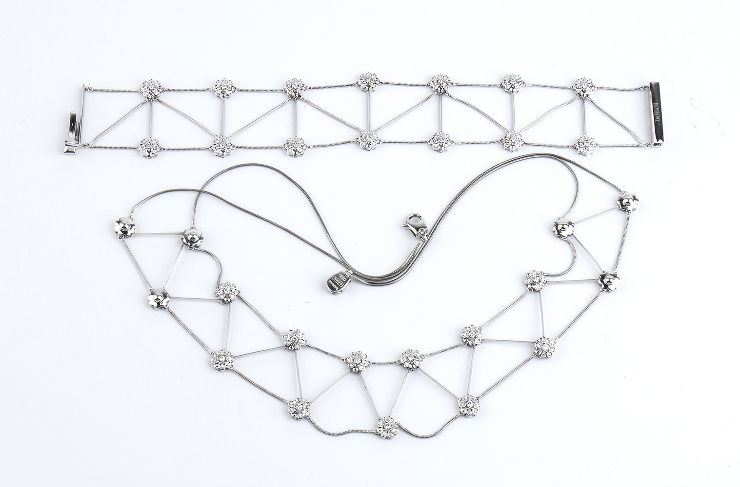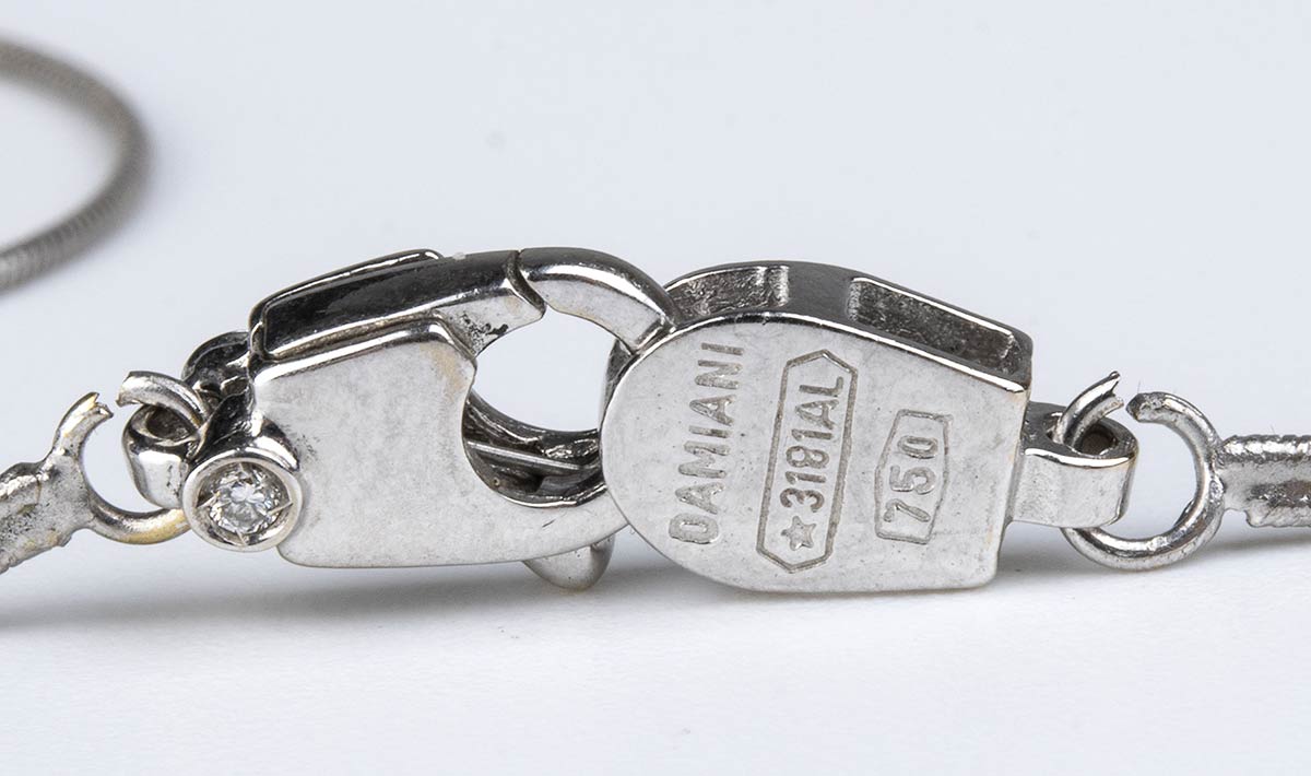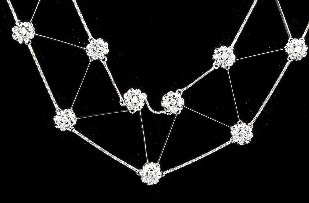 oro bianco 18k, motivo a rete con piccoli fiori in diamanti. Firmato DAMIANI.