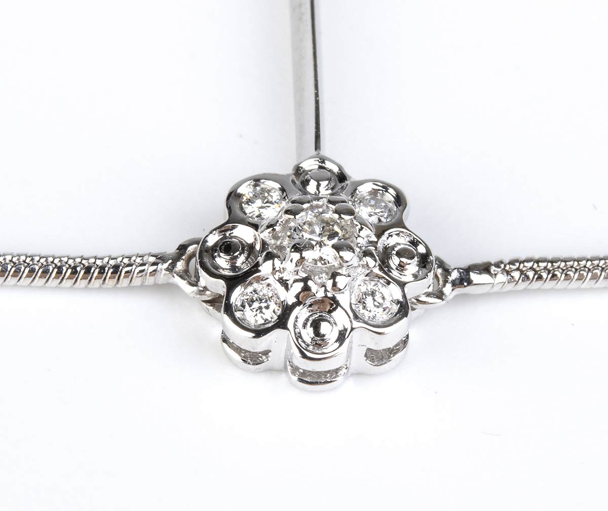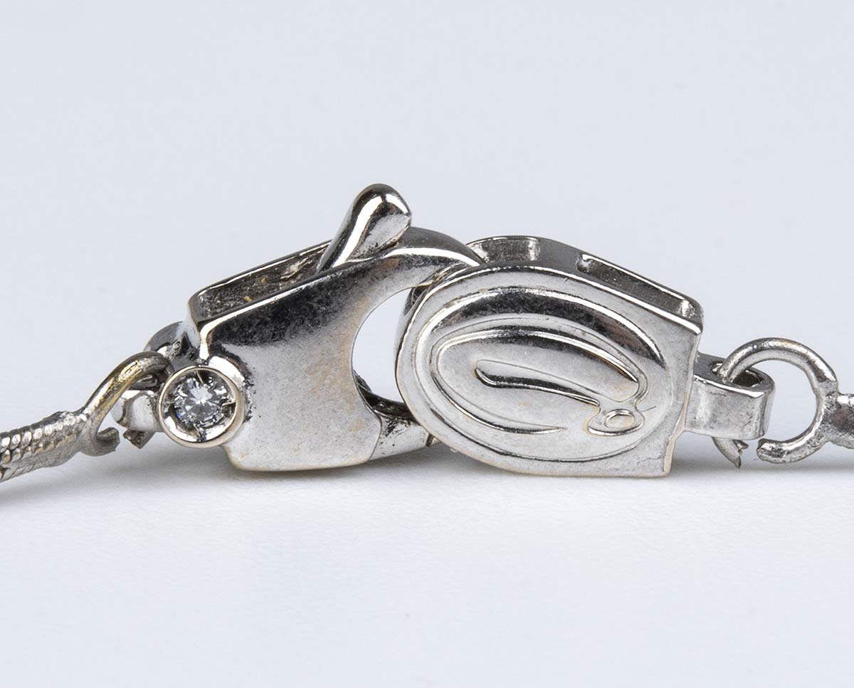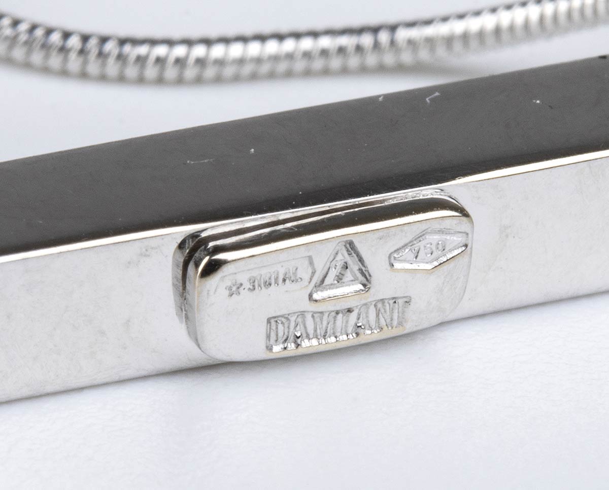 oro bianco 18k, motivo a rete con piccoli fiori in diamanti. Firmato DAMIANI.