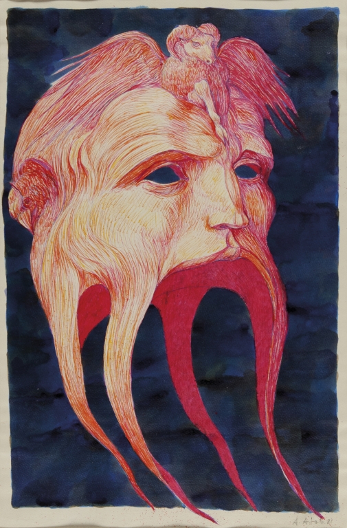 ABATE ALBERTO (1946-) Maschera 1981tecnica mista su carta cm 49x31,5firmato e...
