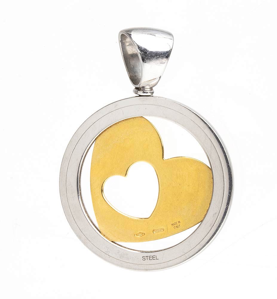 Lot 313 | BULGARI: pendente tondo-cuore in oro e acciaio