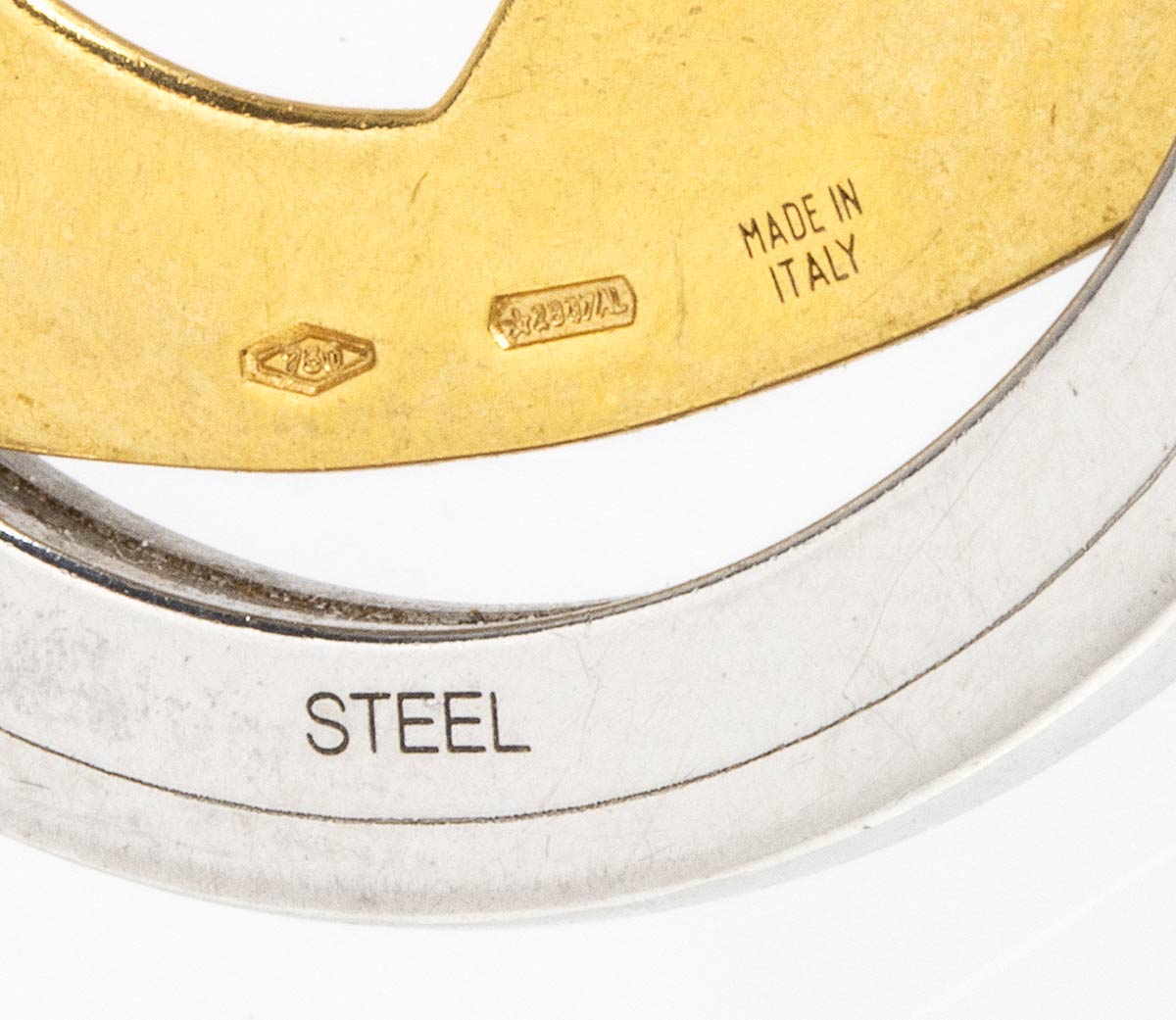 oro giallo 18k ed acciaio, firmato BVLGARI, punzonato "Made in Italy - 2337 AL - 750 - STEEL".